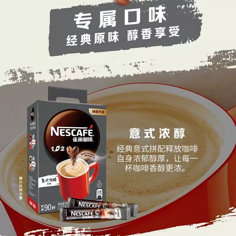 📚 雀巢咖啡特浓90条装三合一奶香拿铁雀巢原味100条提神速溶咖啡粉