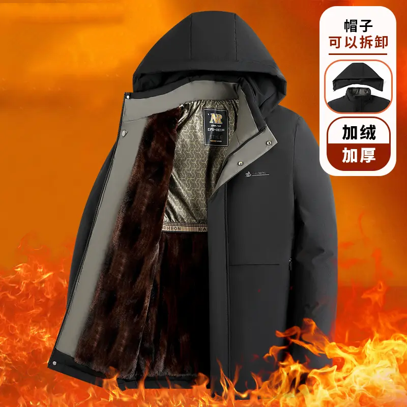 🔥冬季男士必备!🧤加绒加厚羽绒棉服,爸爸派克服,券后价79元,温暖每一刻�