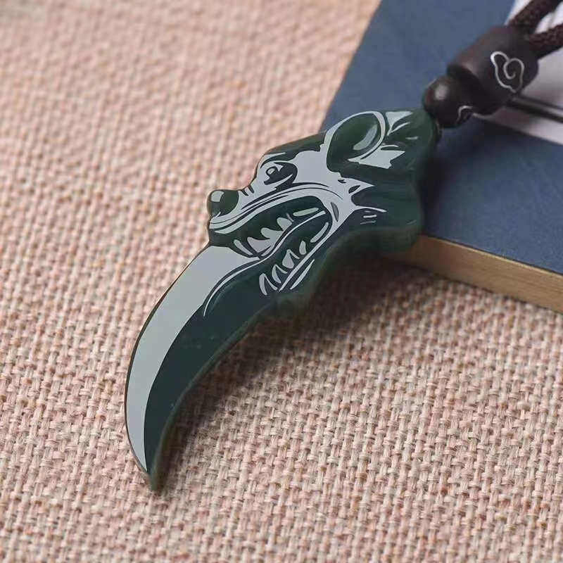 📚 真品天然和田玉狼牙玉坠挂件青玉狼牙狼图腾挂件玉坠玉石项链男女
