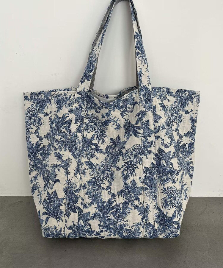 📚 BL图瓦兹抽象植物纹样 老式刺子提花 青花瓷配色 超大容量 托特包