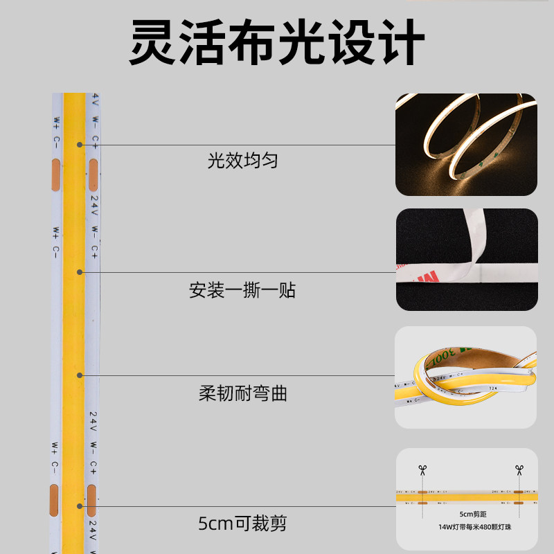 📚 全光谱护眼灯带24v无频闪客厅吊顶低压线条灯高显指98自粘led灯条