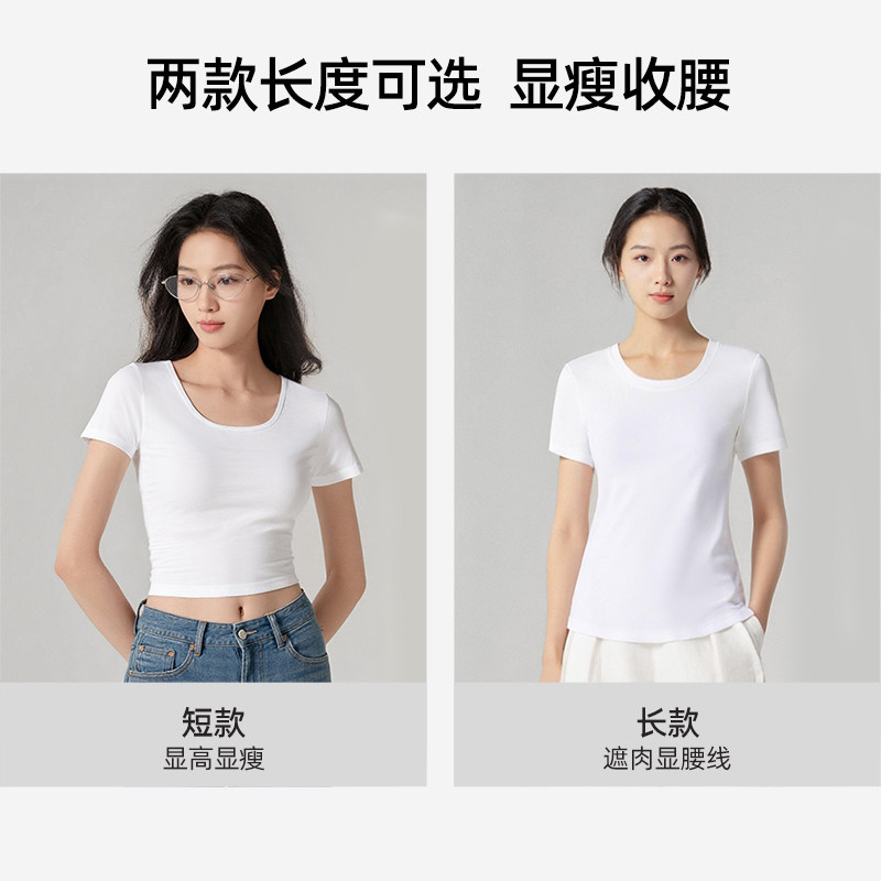 📚 幸棉纯棉正肩短袖白t恤女2025新款夏季穿搭短款上衣