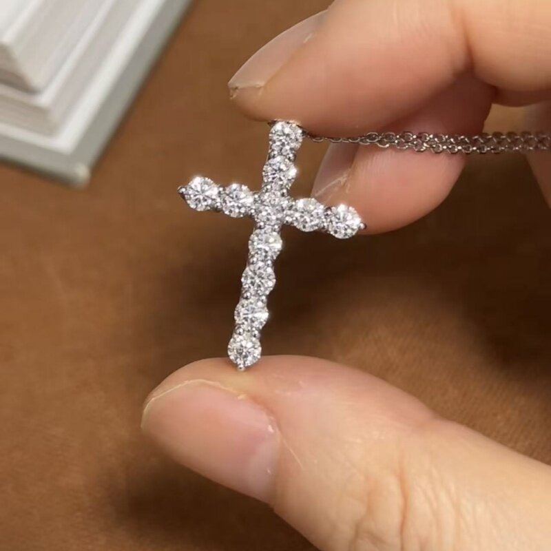 📚 【原版限时价】BM同款大号十字架纯银项链镶嵌满钻配饰爆闪锆石