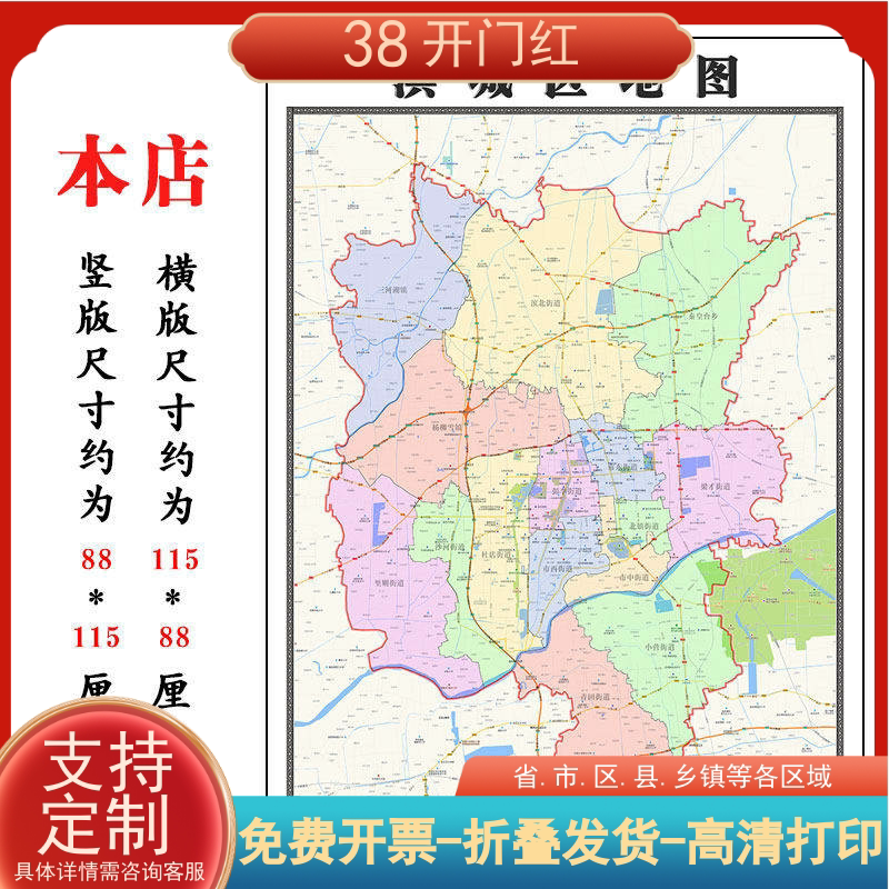 📚 滨城区地图1.15m山东省滨州市折叠版办公室会议室贴画沙发装饰画