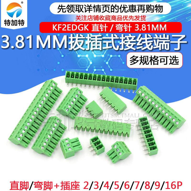 📚 KF2EDG 3.81MM插拔式pcb接线端子弯直针+插座2/3/4/5/6/7/8/9/16p