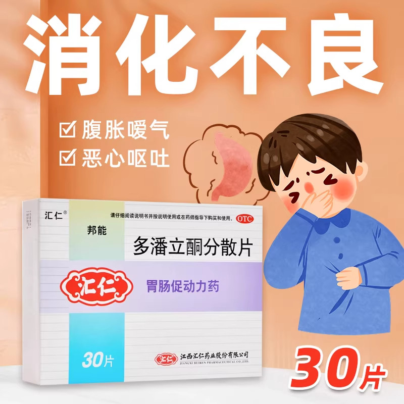 📚 汇仁多潘立酮分散片30片正品消化不良药嗳气恶心呕吐腹部胀痛药和