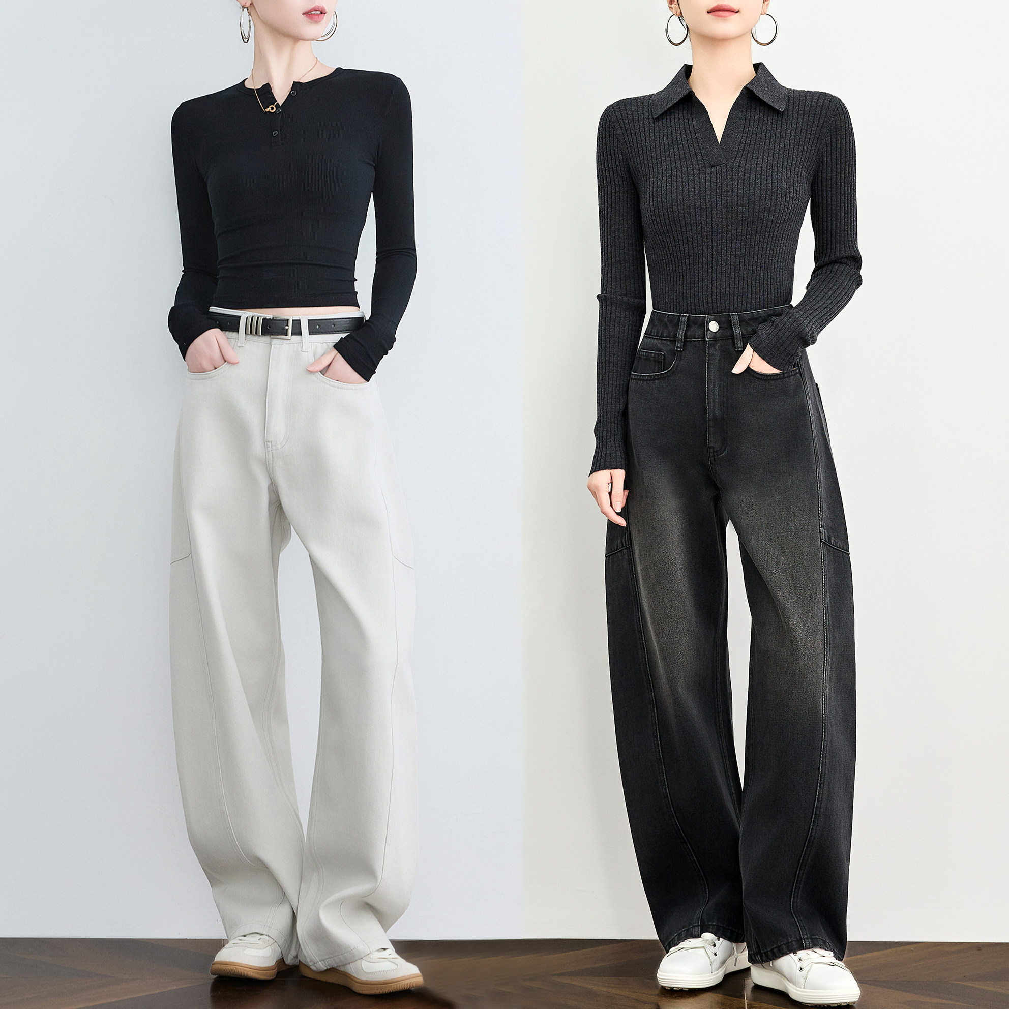 📚 小个子春夏弯刀牛仔裤美式复古阔腿裤高腰镰刀休闲裤宽松香蕉裤女