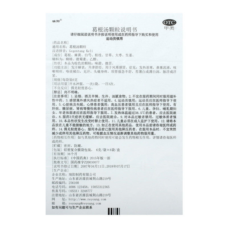 📚 瑞阳葛根汤颗粒不舒咳嗽咽痒官方旗舰店感冒药无汗白润苔薄白身疼