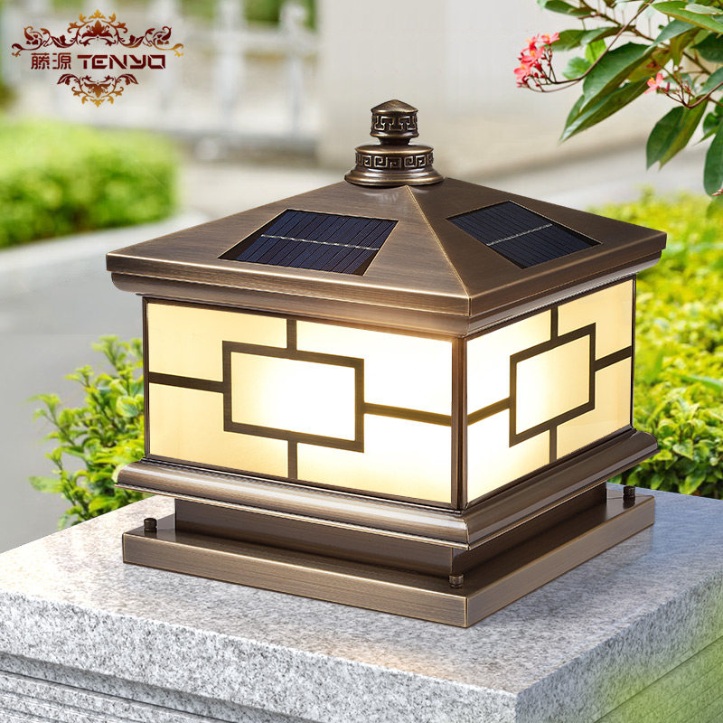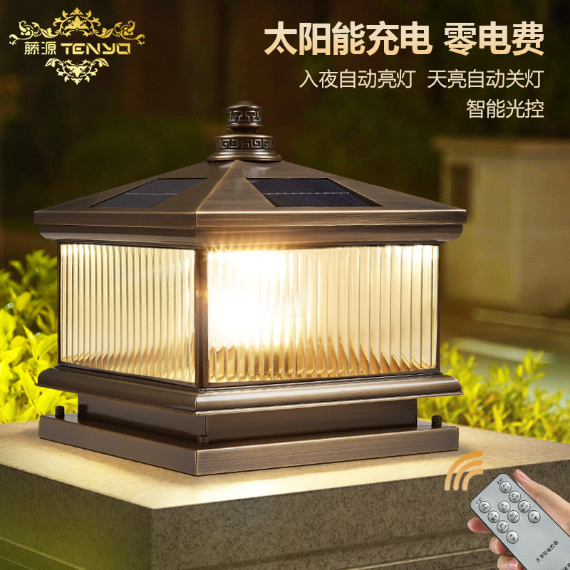 📚 全铜柱头灯太阳能户外防水庭院室外围墙别墅大门柱子灯接电门柱灯