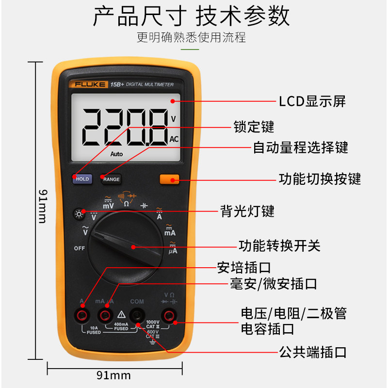 📚 FLUKE福禄克数字万用表高精度全智能多功能万能表F15B/17B/F101