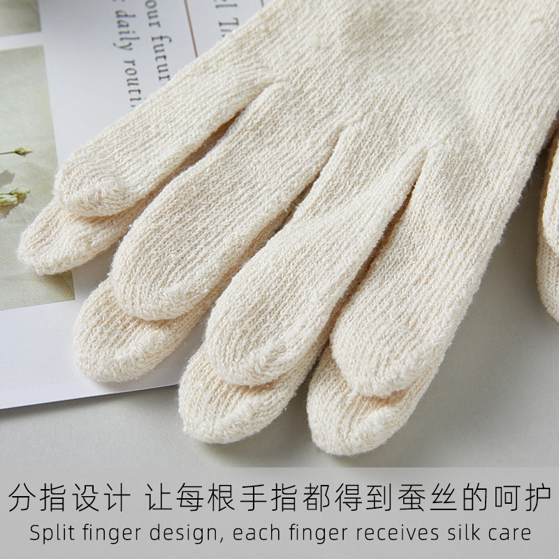 📚 天然桑蚕丝油丝养肤手套女细螺纹弹力袖口舒适不紧绷真丝保暖手套