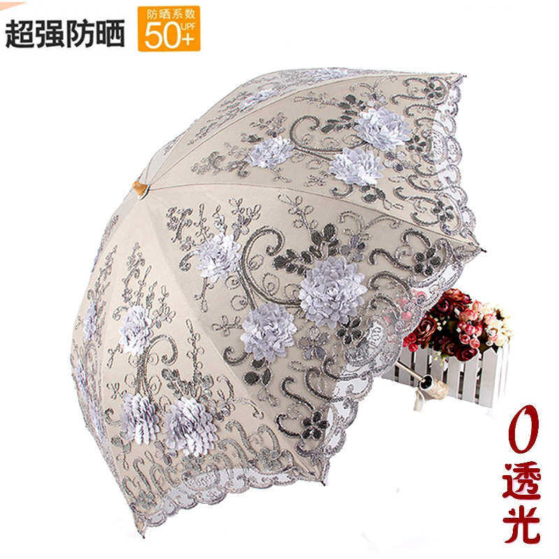 📚 双层太阳伞女防晒二折遮阳伞防紫外线蕾丝刺绣晴雨两用小洋伞公主