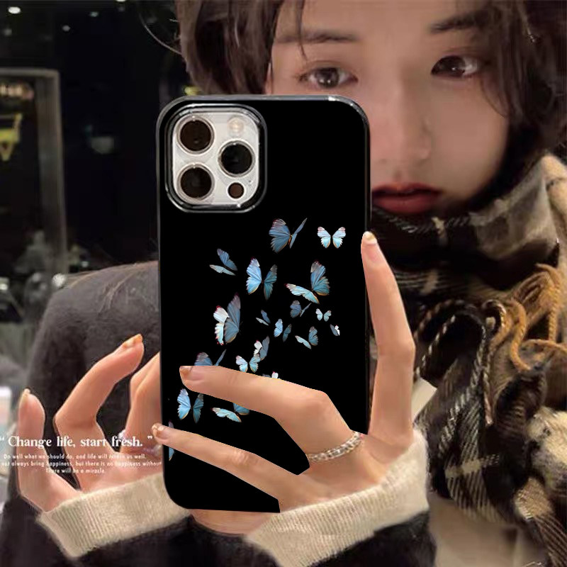 📚 冷淡风艺术蝴蝶适用苹果17promax不会撞壳的手机壳新款iPhone14pro透明15黑色12高级感16pm创意小众防摔套女