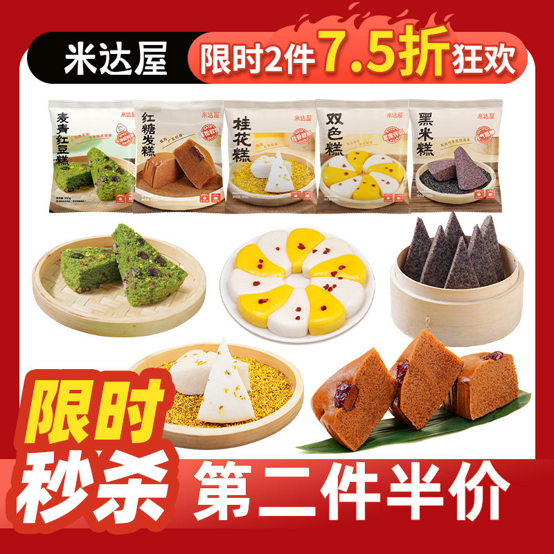 📚 米达屋麦青红豆糕红糖桂花双色黑米发糕免切早餐懒人即食蓬松美味