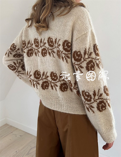 📚 罗丝玫瑰套衫图解 女士提花高领落肩袖 中文字毛衣图解编织教程
