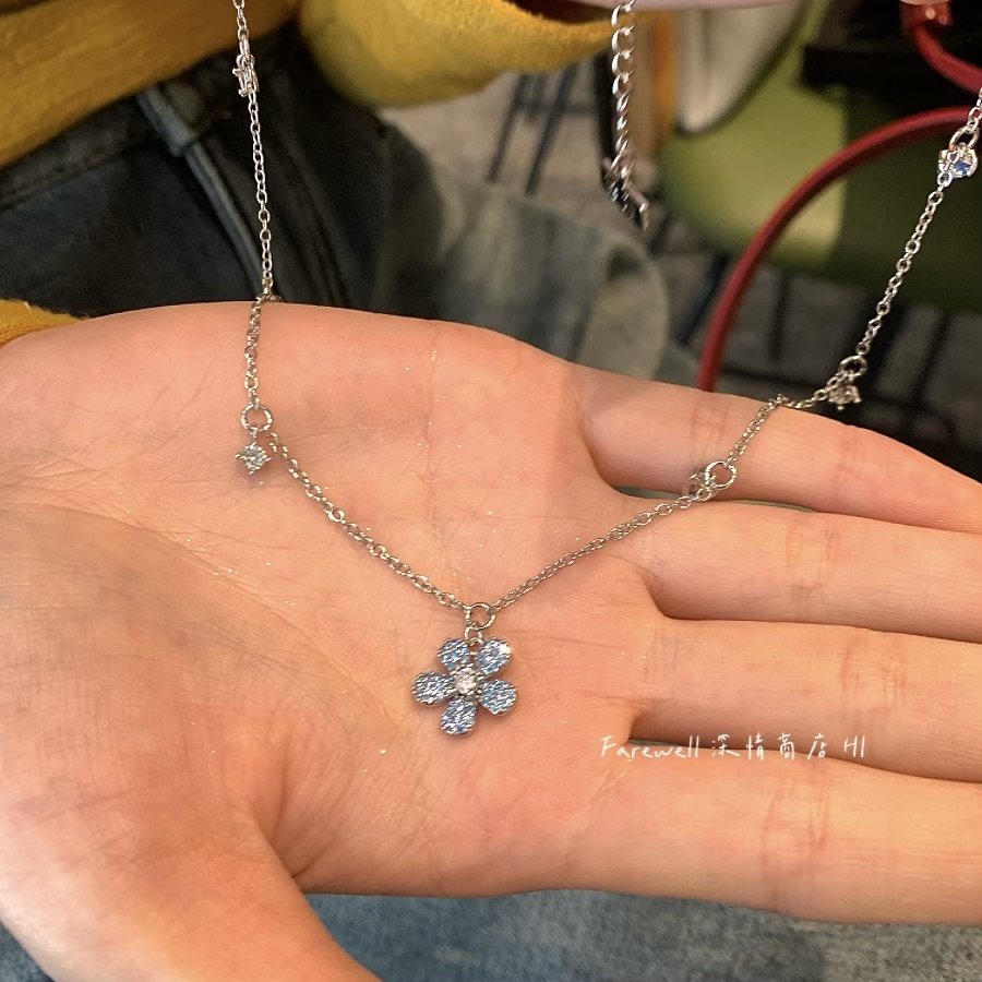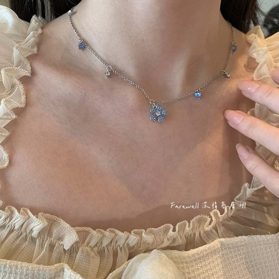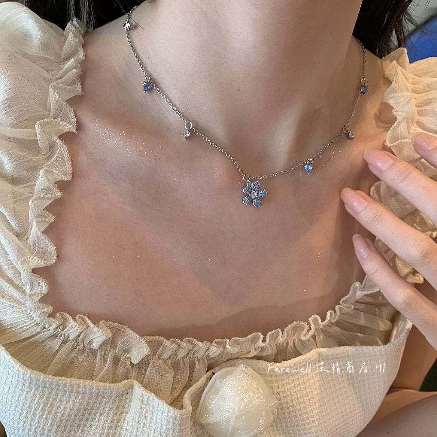 📚 蓝色小花项链女款高级感轻奢小众独特颈链锁骨链2025新款爆款吊坠
