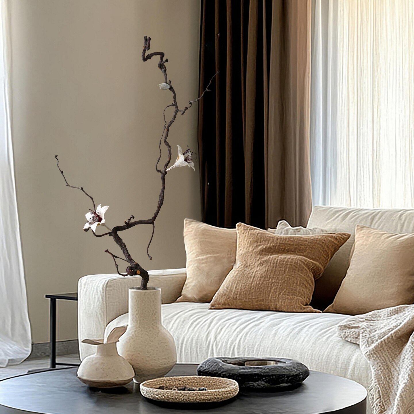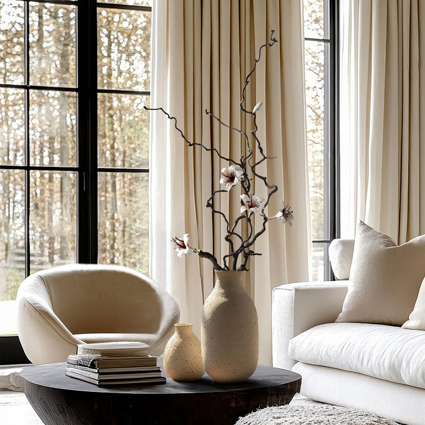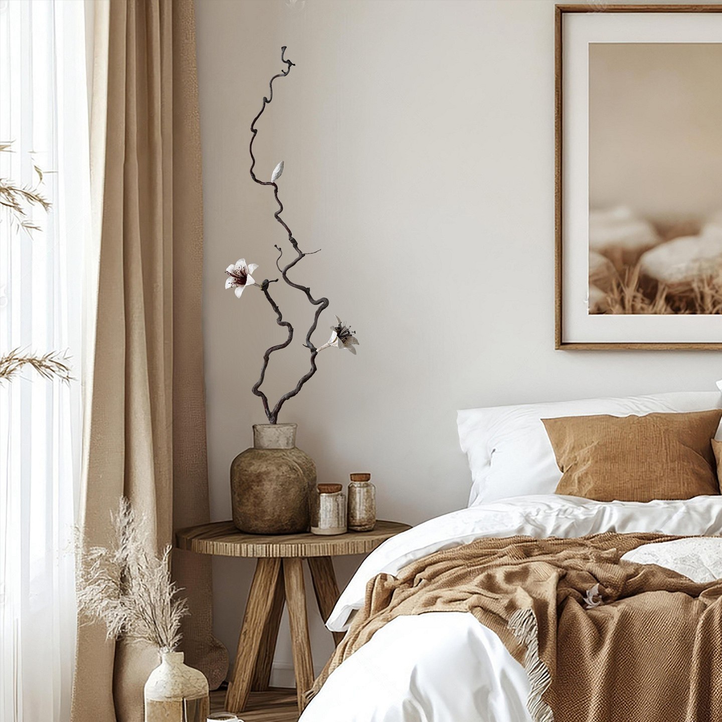 📚 百合花客厅落地干花花束家居摆设天然风干真花树枝装饰长干枝插花