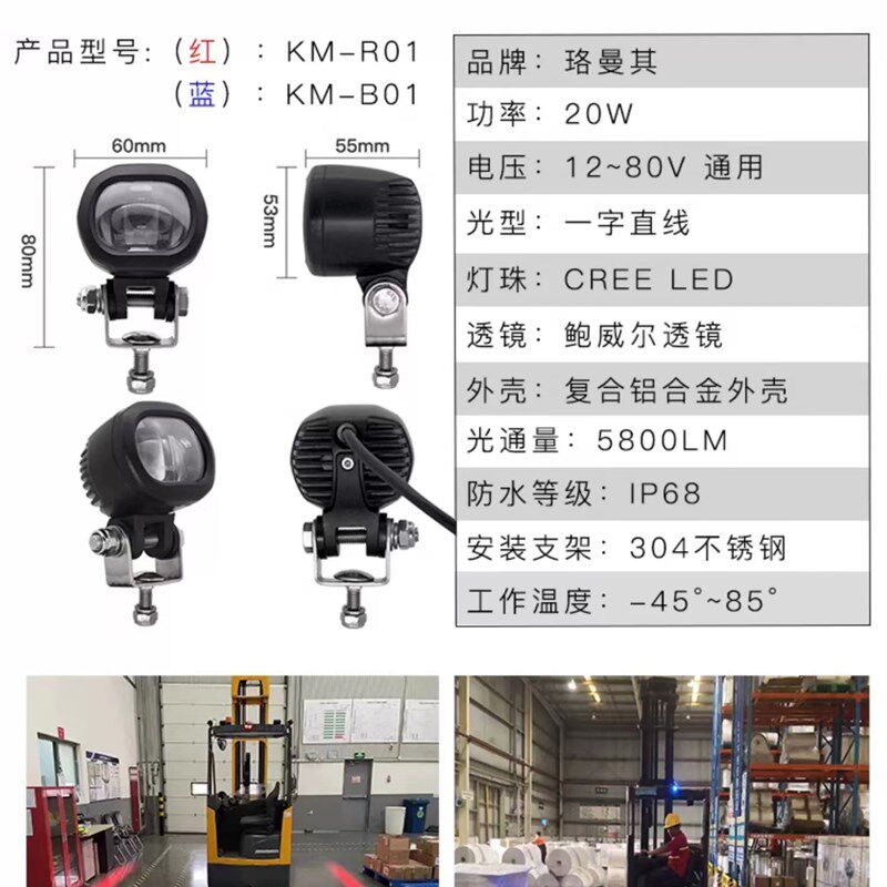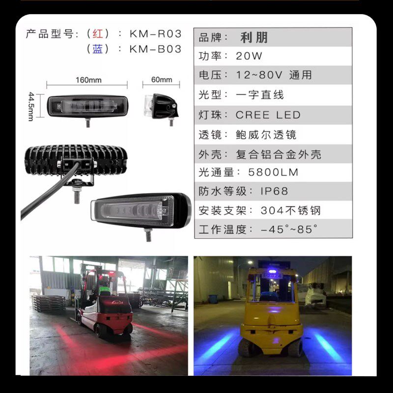 📚 叉车区域边界警示灯一字直线红光灯安全区域倒车蓝光灯