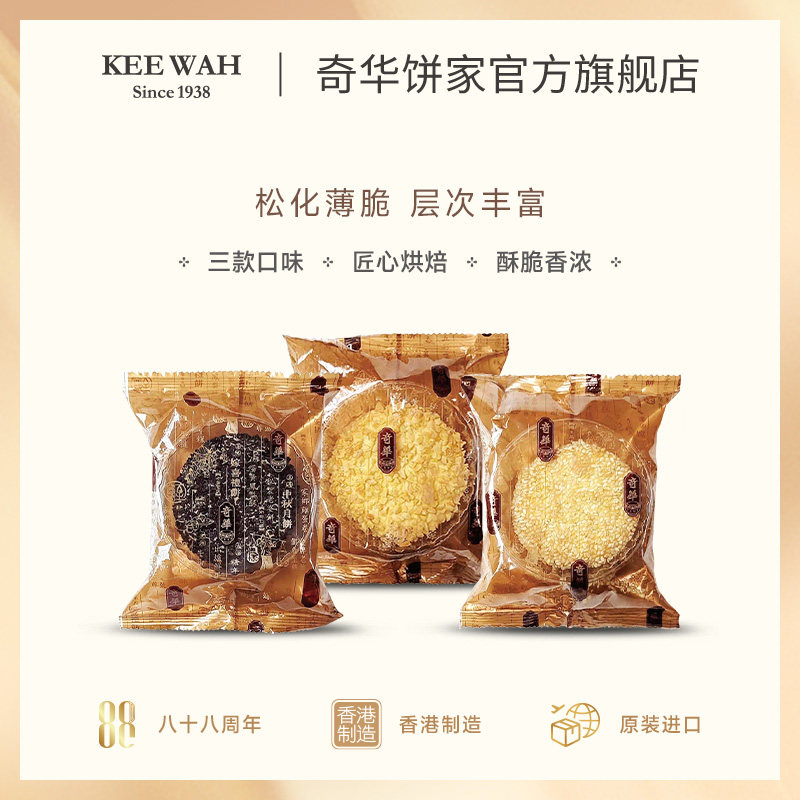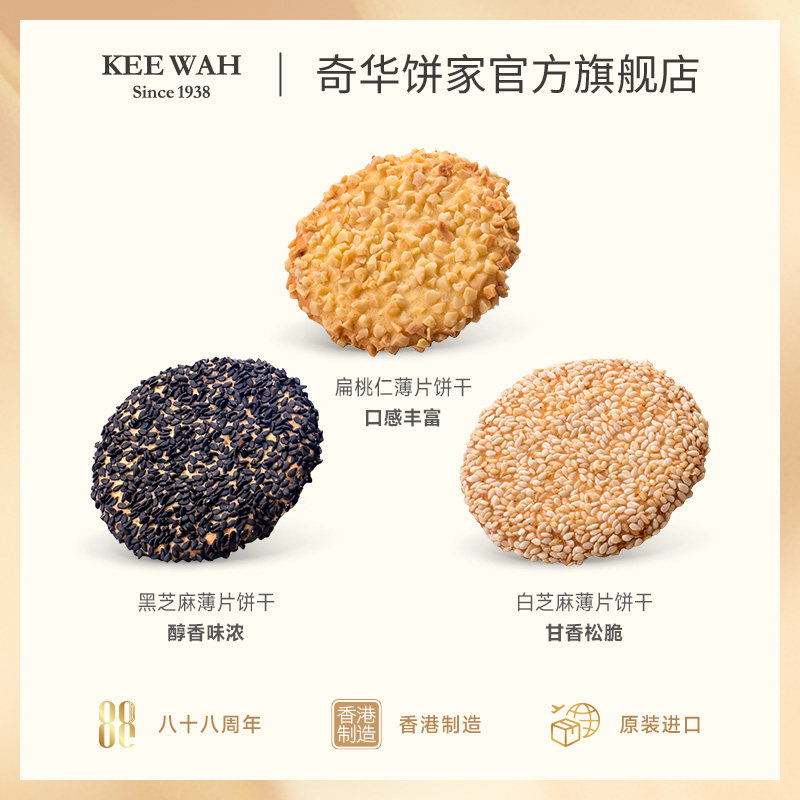 📚 香港[奇华饼家]黑芝麻薄片扁桃仁饼干糕点特产进口小吃零食下午茶