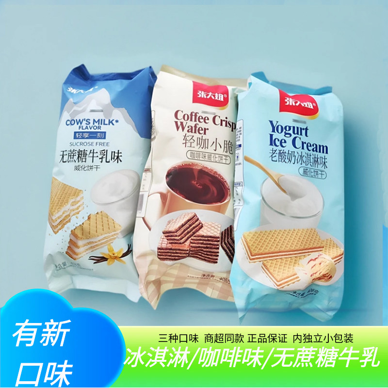 📚 张大姐轻咖小脆咖啡老酸奶冰淇淋味威化饼干无蔗糖休闲办公零食品