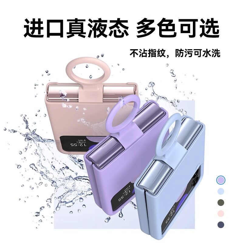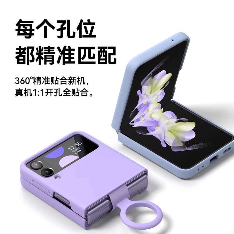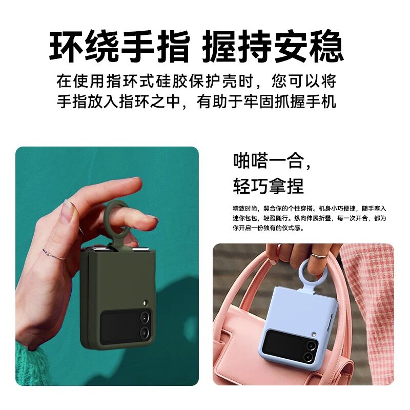 📚 适用三星zflip4手机壳液态硅胶Galaxy Z Flip3折叠屏高级感保护套flip1/2全包防摔软壳flip5/6网红带指环外壳