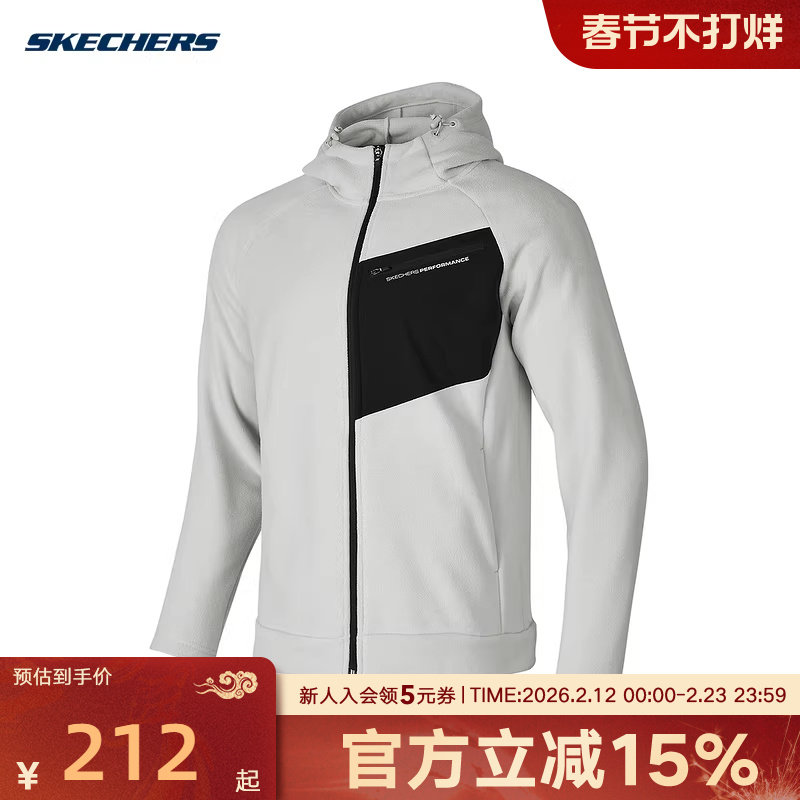 📚 Skechers斯凯奇摇粒绒保暖夹克冬男撞色连帽外套 P424M132/0006