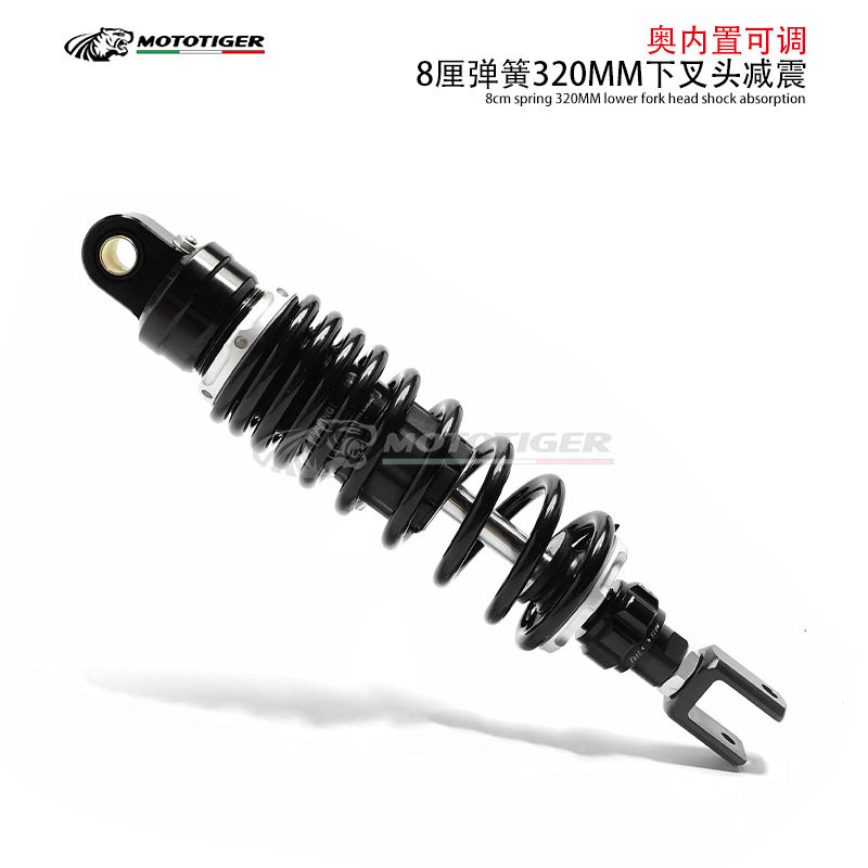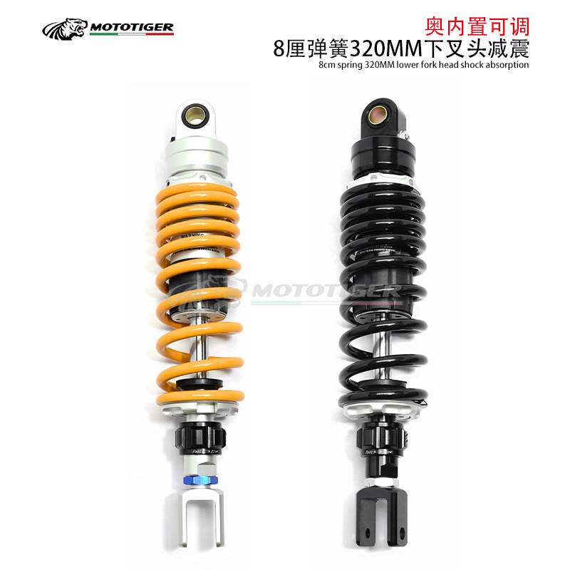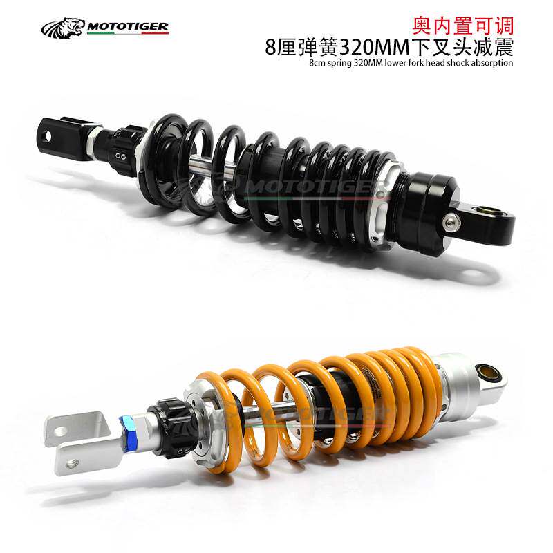 📚 摩托车减震器改装后减震320MM长度 可调节阻尼24档叉头黑弹簧避震