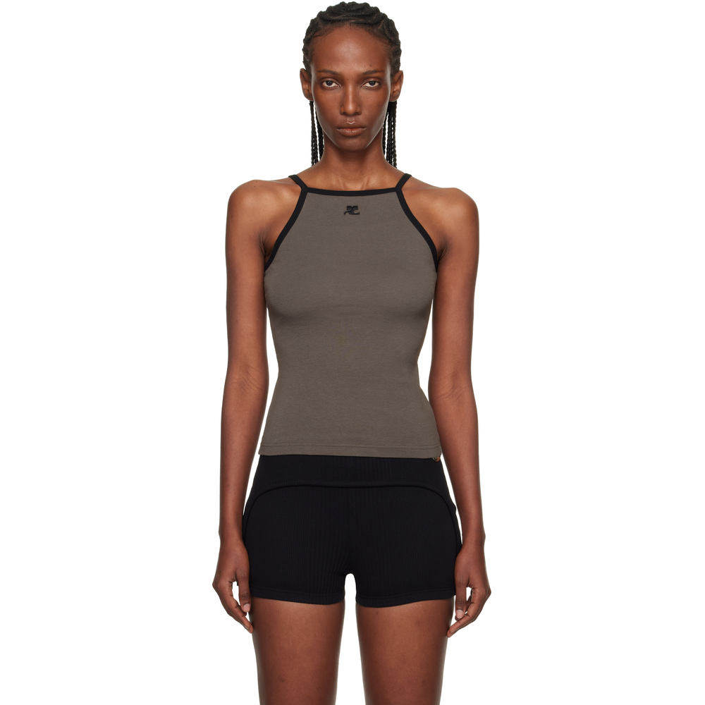 📚 1h可退 香港直邮Courreges 女士 灰色撞色吊带背心 126JDE149JS02