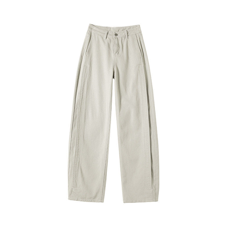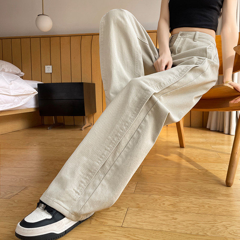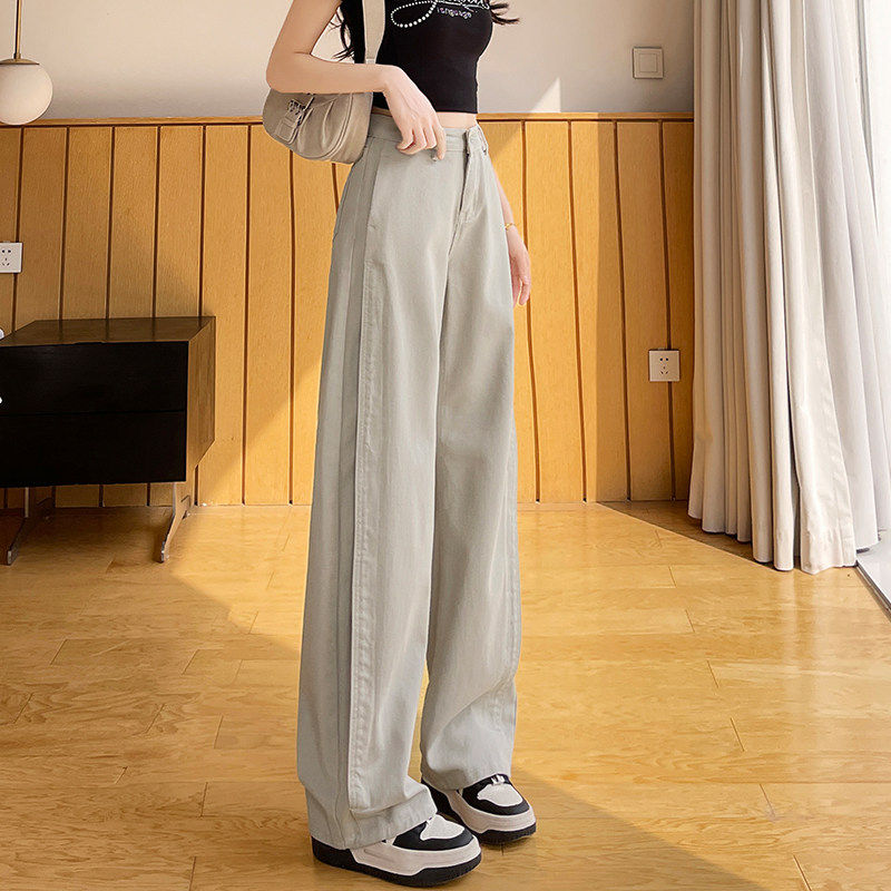 📚 工装裤女款灰色酷飒风2026秋季高腰梨型遮胯小个子窄口牛仔阔腿裤