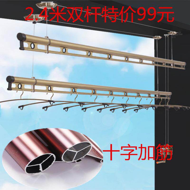 📚 升降阳台双杆手摇DDM升降衣架晒加厚加筋杆单晾衣杆东龙