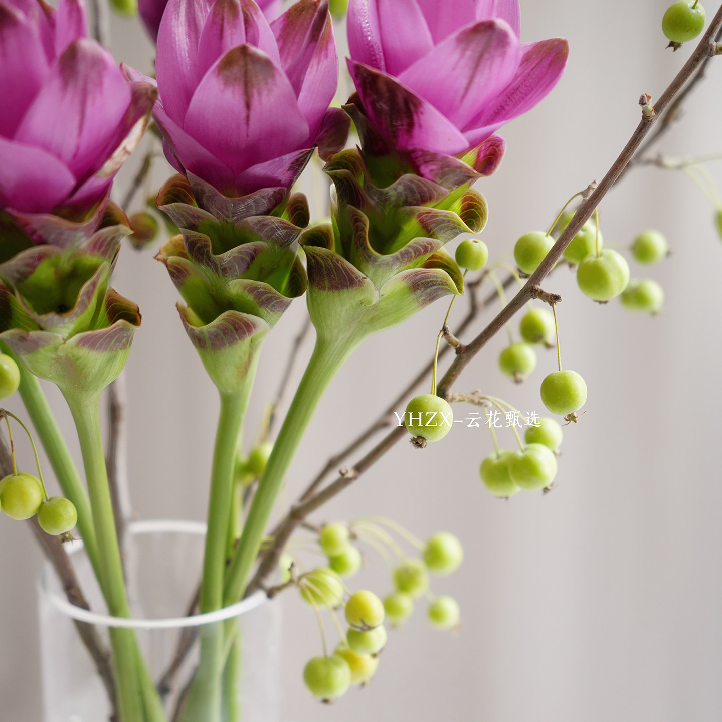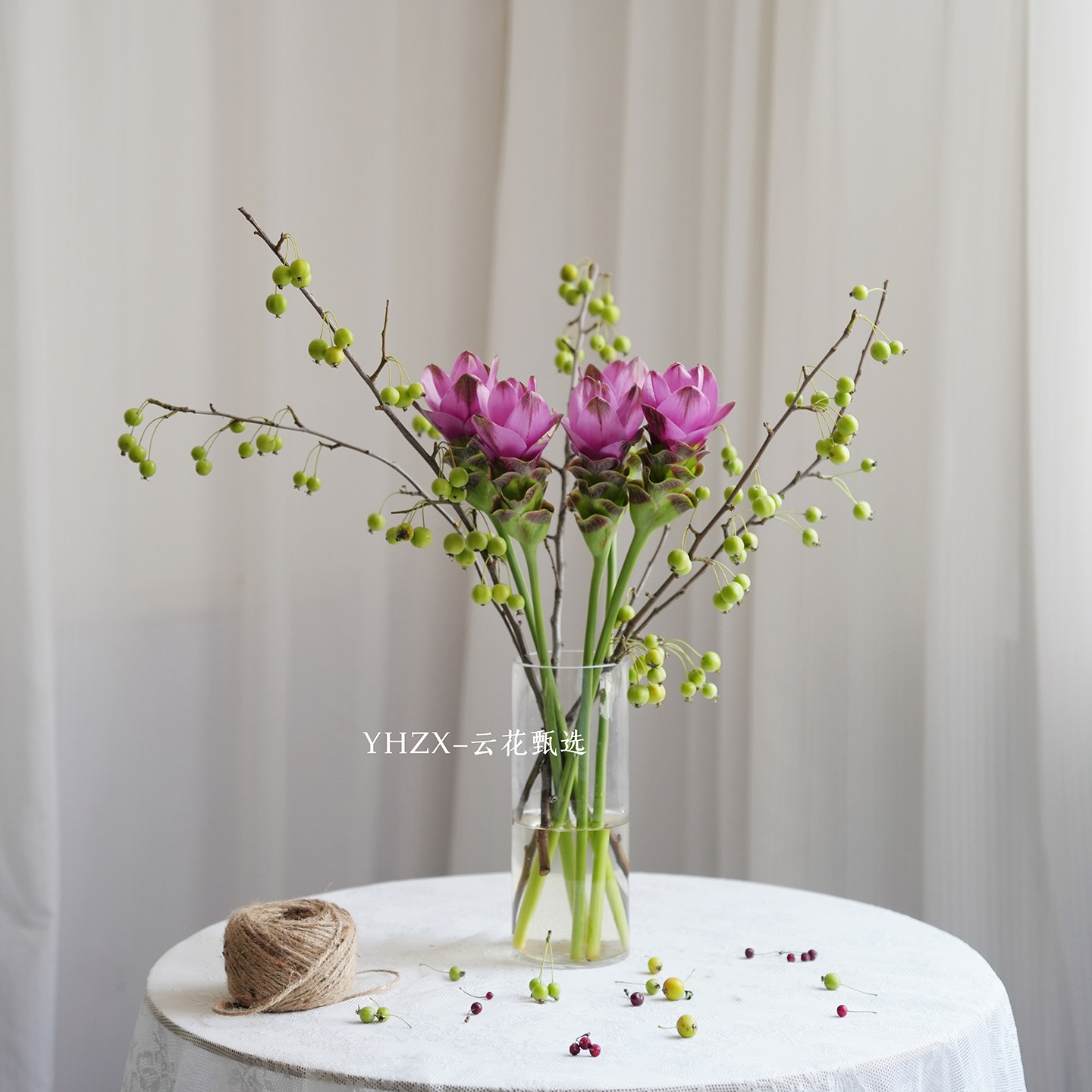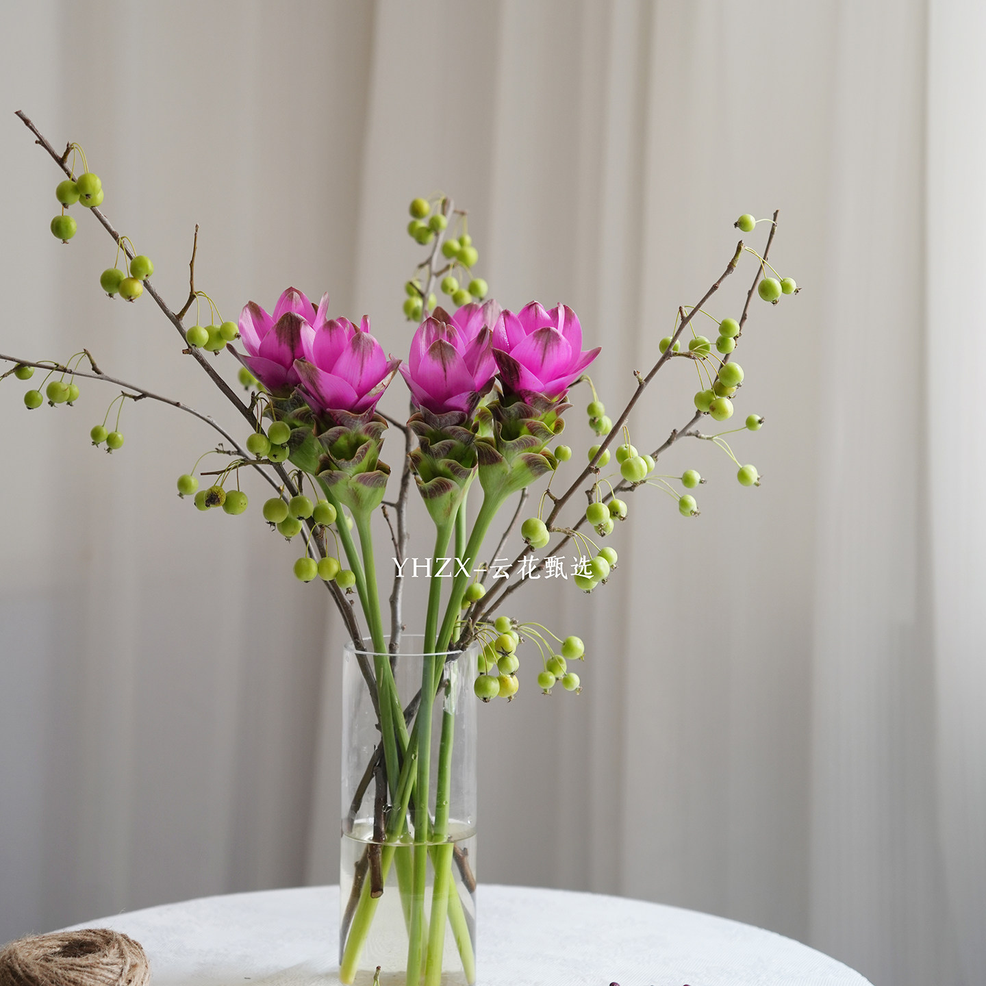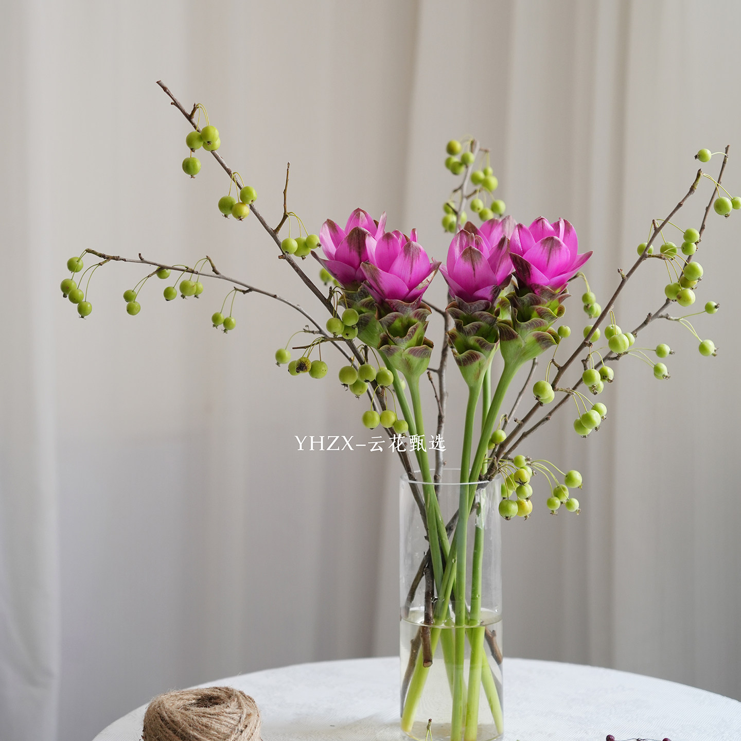 📚 【云花甄选】玫红色姜荷花绿色海棠果真的鲜花家居装饰插花花期长