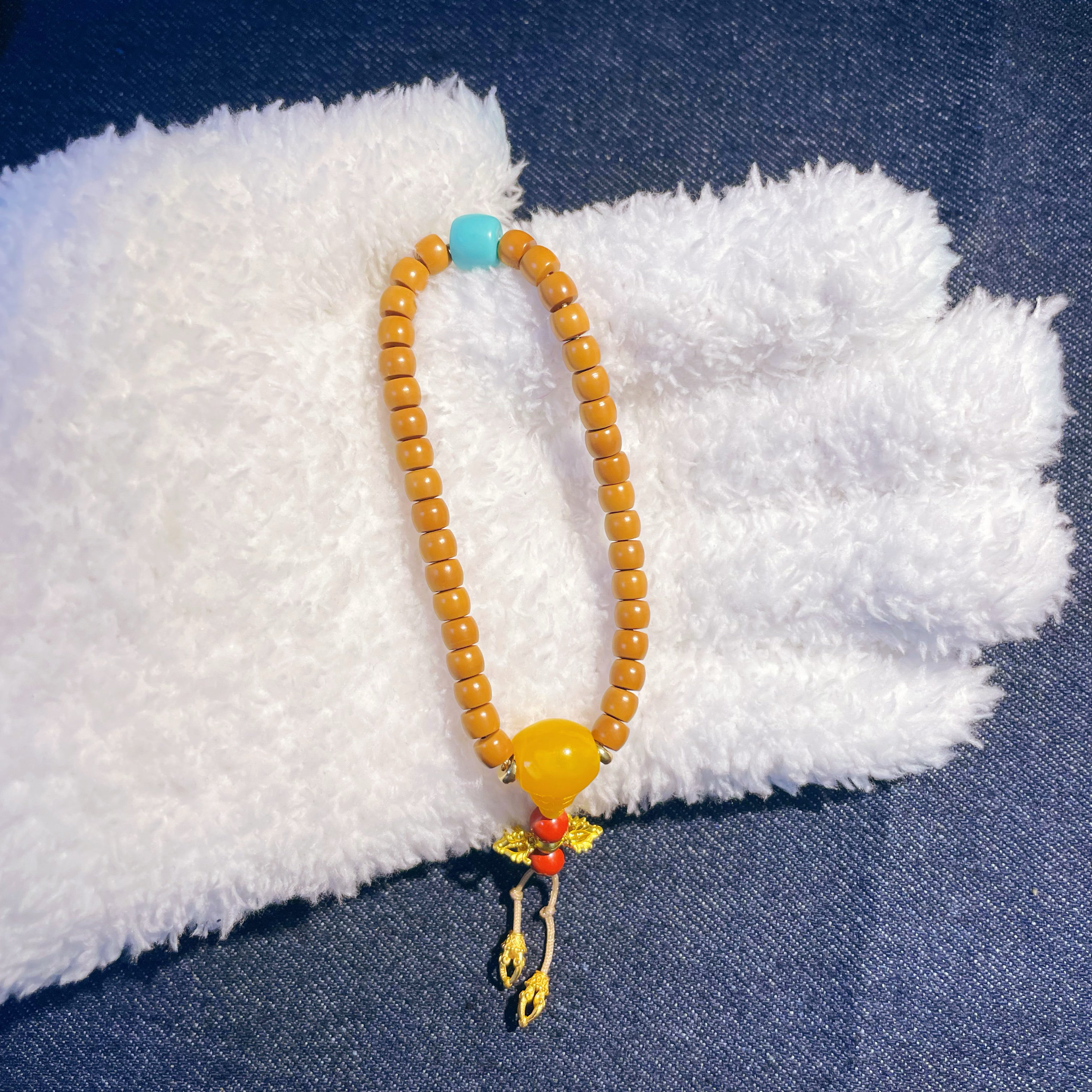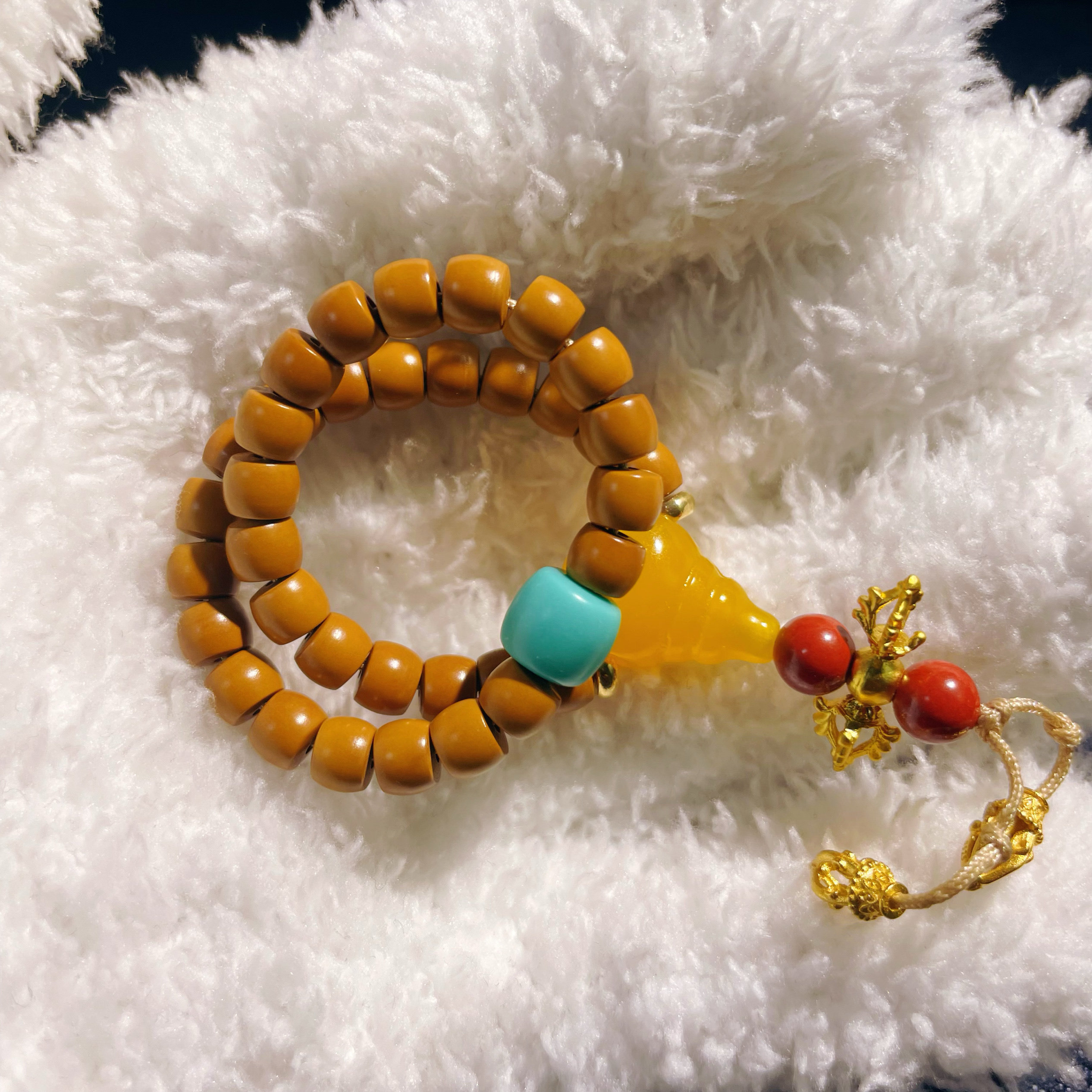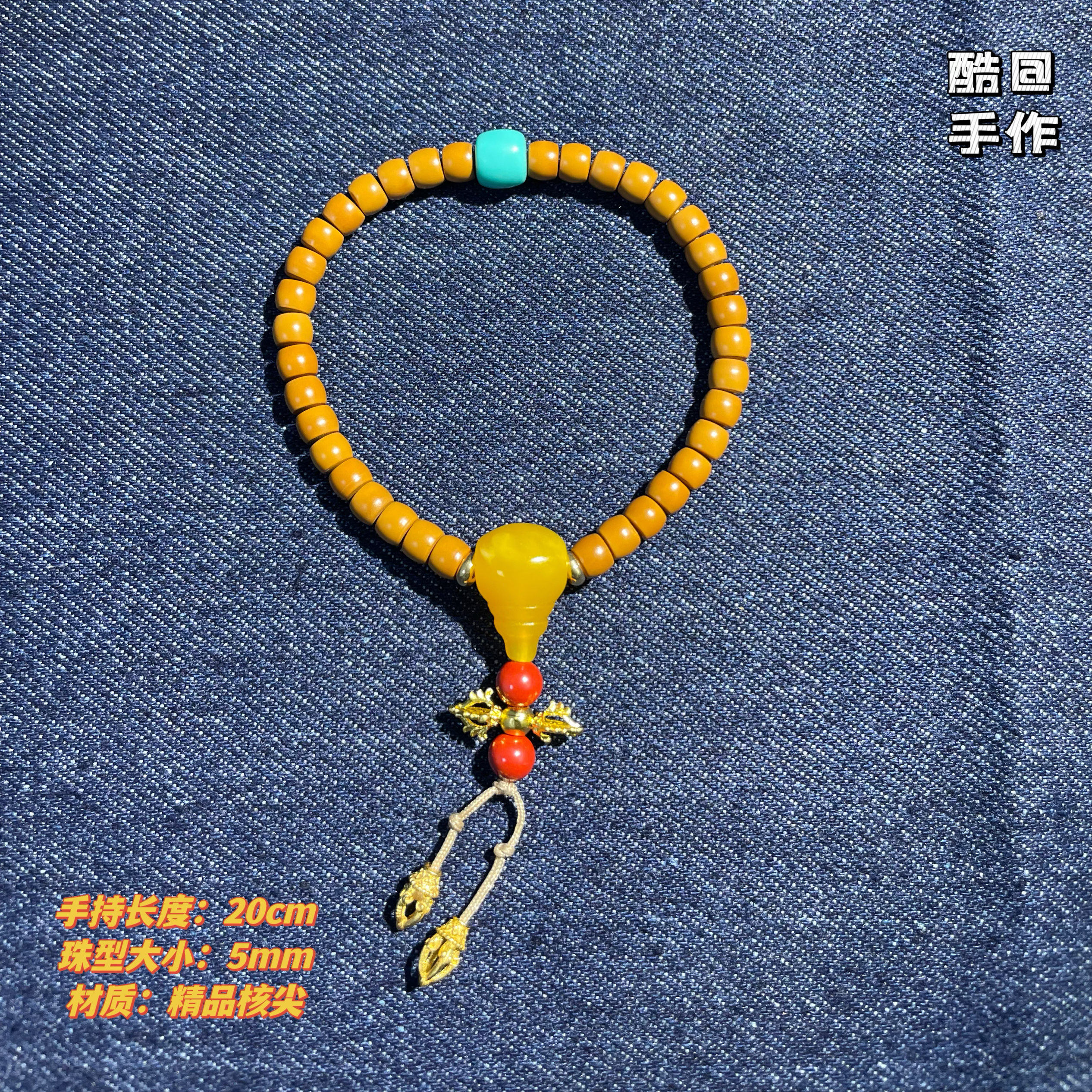📚 橄榄核手串女文玩蜜蜡绿松直切原籽单圈朱砂核尖手链手持念珠