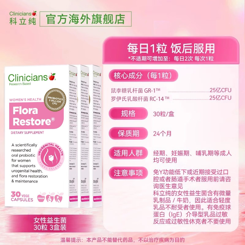📚 科立纯益生菌女性私处护理专用乳酸杆菌 进口益生菌口服胶囊3盒装