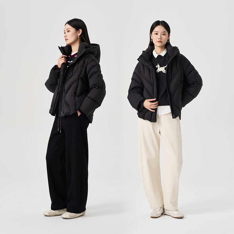 📚 【白鹅绒】OTT2025冬季女装新品立领连帽双重保暖短款羽绒服外套
