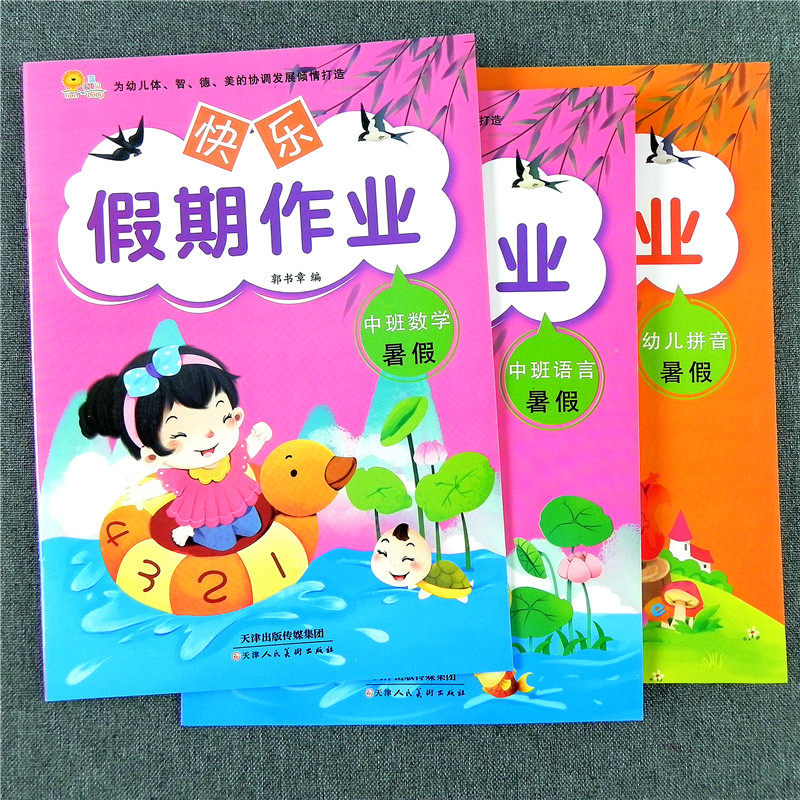 📚 全套幼儿园中班暑假作业 语言+数学 拼音儿童3-4-5-6岁 识字语文一日一练图形练习册复习 家庭作业启蒙训练10以内相邻数字天天练