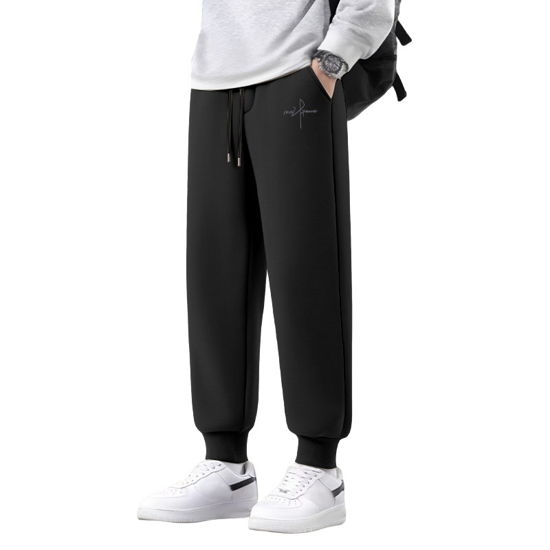 📚 GV真维斯加厚绒裤子男款冬季羊羔绒保暖束脚裤男士黑色宽松棉裤A