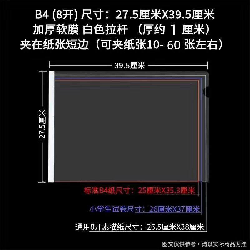👀首先说说它的外观,B5的设计简洁大方,透明材质,既实用又美观。无论是A4横版还是8K图画纸,都能轻松应对。而且它的多功能性,让我对这个夹子爱不释手。无论是拉杆还是文件夹,都能满足我的各种需求。