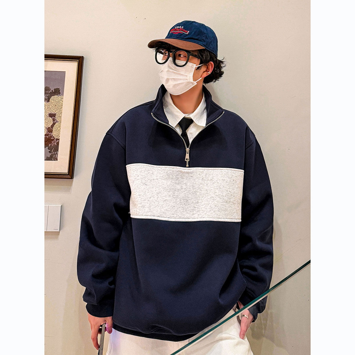 📚 2026春季拼色立领拉链卫衣男士潮流宽松春秋款情侣装休闲上衣外套