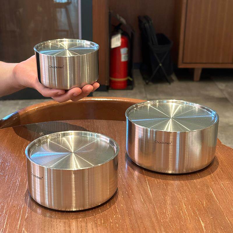 📚 带盖子可加热碗!1810不锈钢泡面碗蒸蛋羹小碗保鲜米饭碗蒸菜分餐