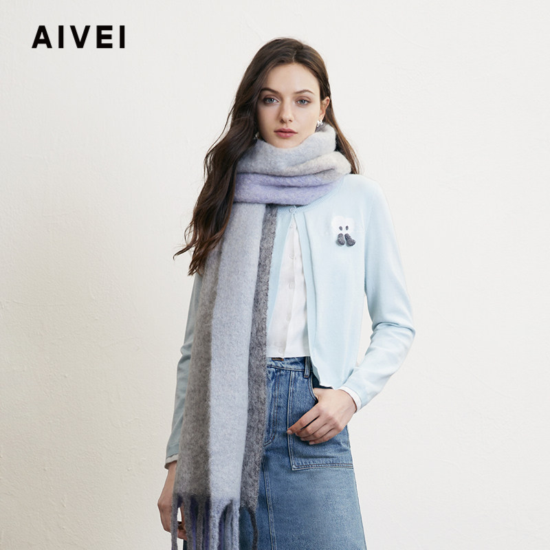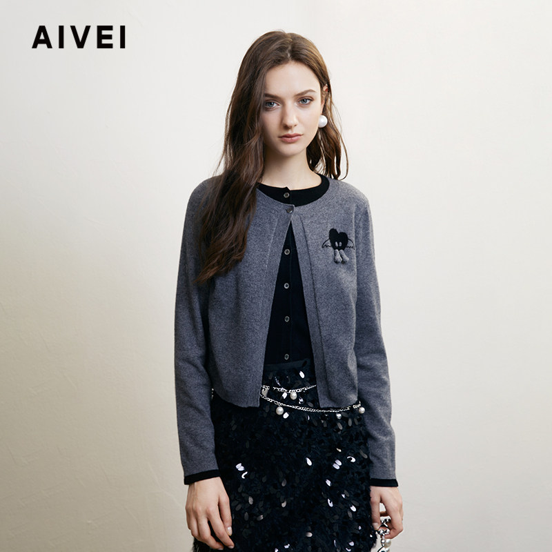 📚 AIVEI欣贺艾薇2024冬新法式叠穿假两件撞色爱心针织开衫R763802A
