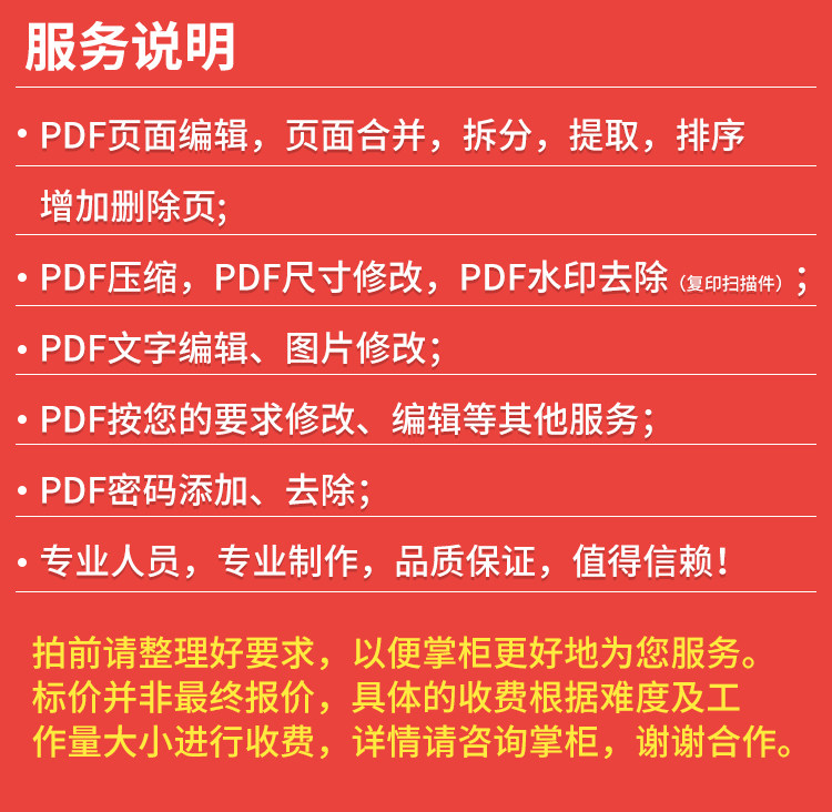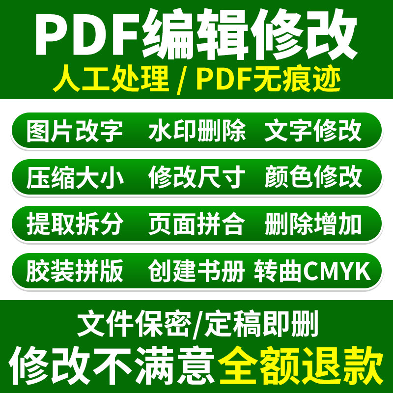 📚 PDF编辑文字人工修改/压缩/去底色/解除密码/删除水印/PS无痕改字