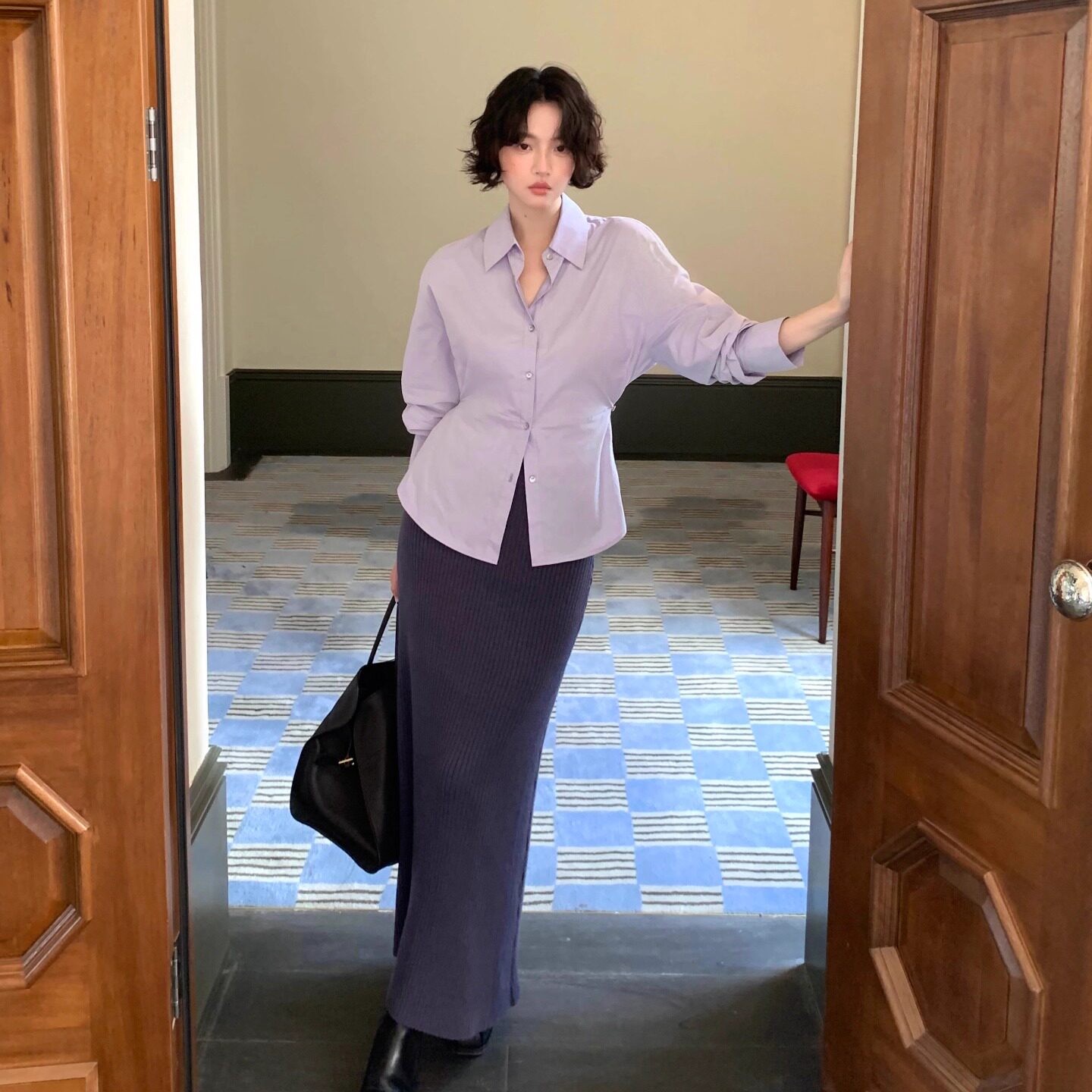 📚 酒午自制【紫汐】港风复古秋季新款100%长绒棉衬衣收腰衬衫上衣女