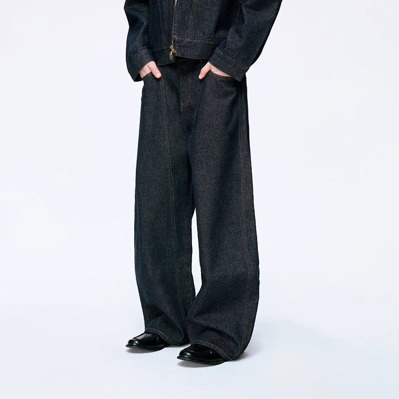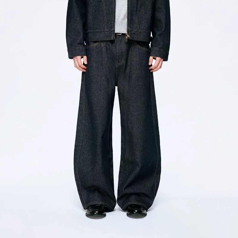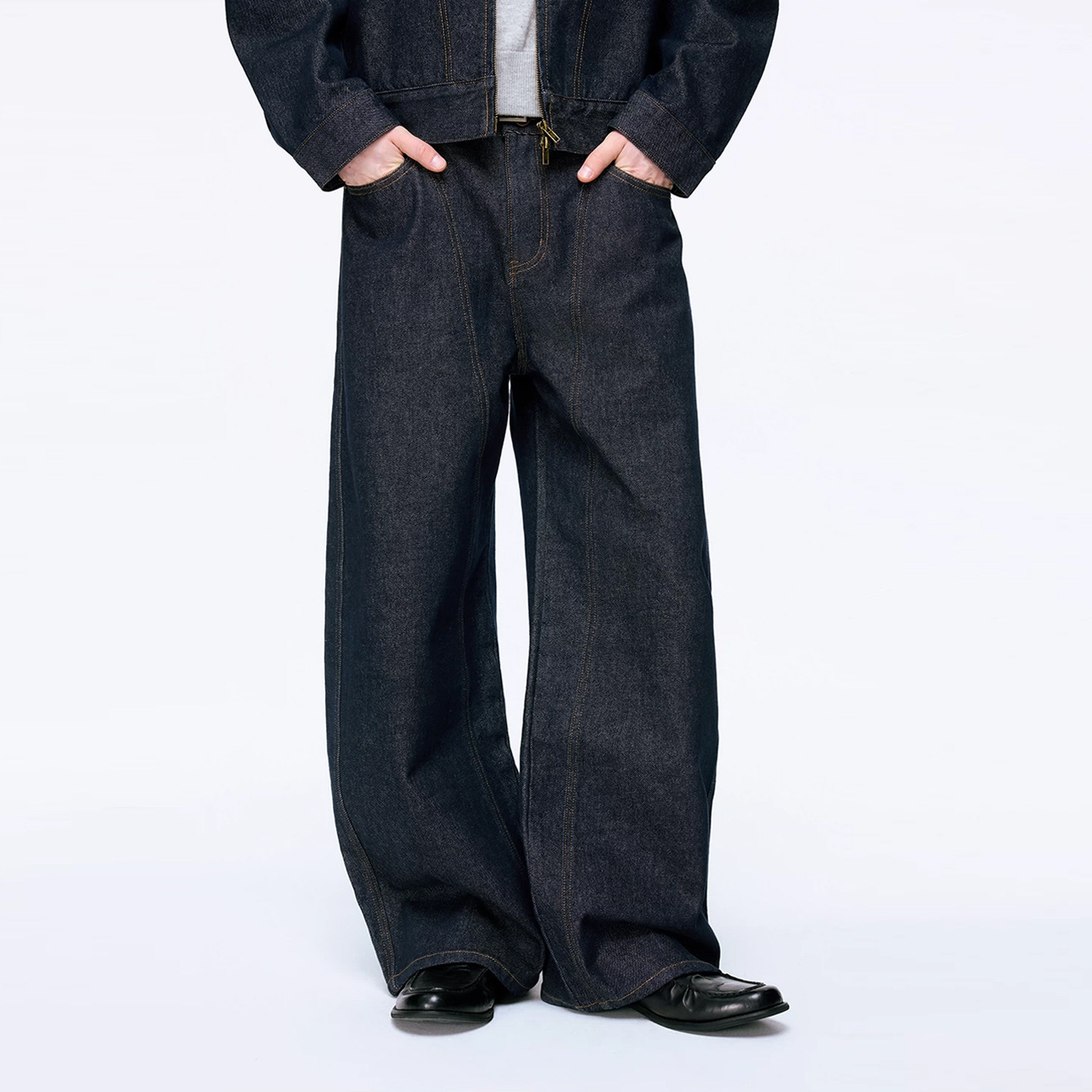 📚 BONELESS小众设计丹宁蓝弯刀原牛休闲长裤复古宽松cleanfit牛仔裤