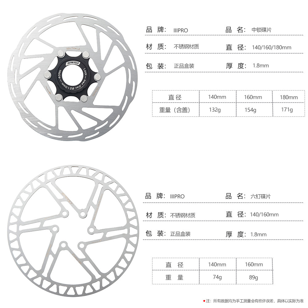 📚 IIIPRO山地自行车超轻中锁碟片160mm180六钉碟盘刹车片140公路