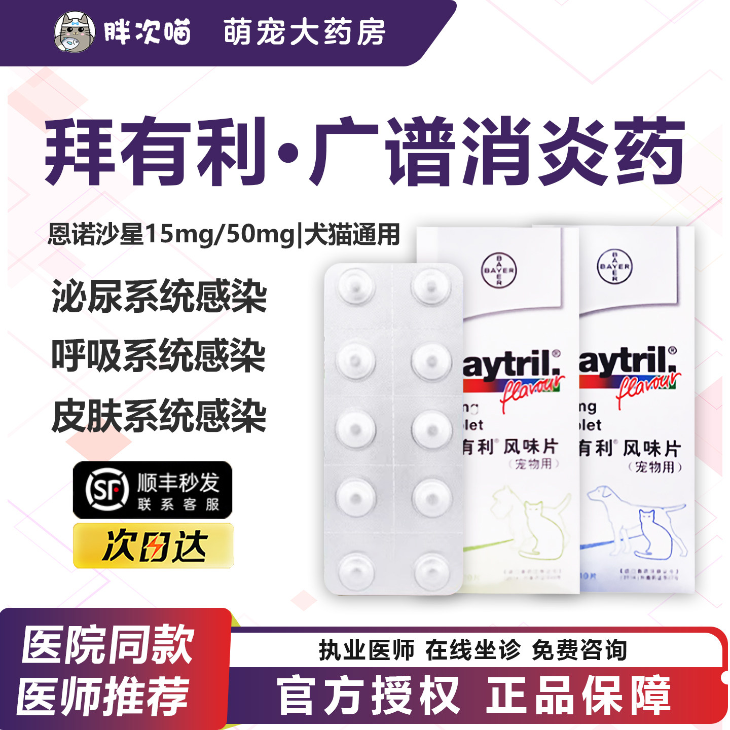 📚 拜有利baytril恩诺沙星风味片犬猫消炎抗菌泌尿路感染感冒脓皮症