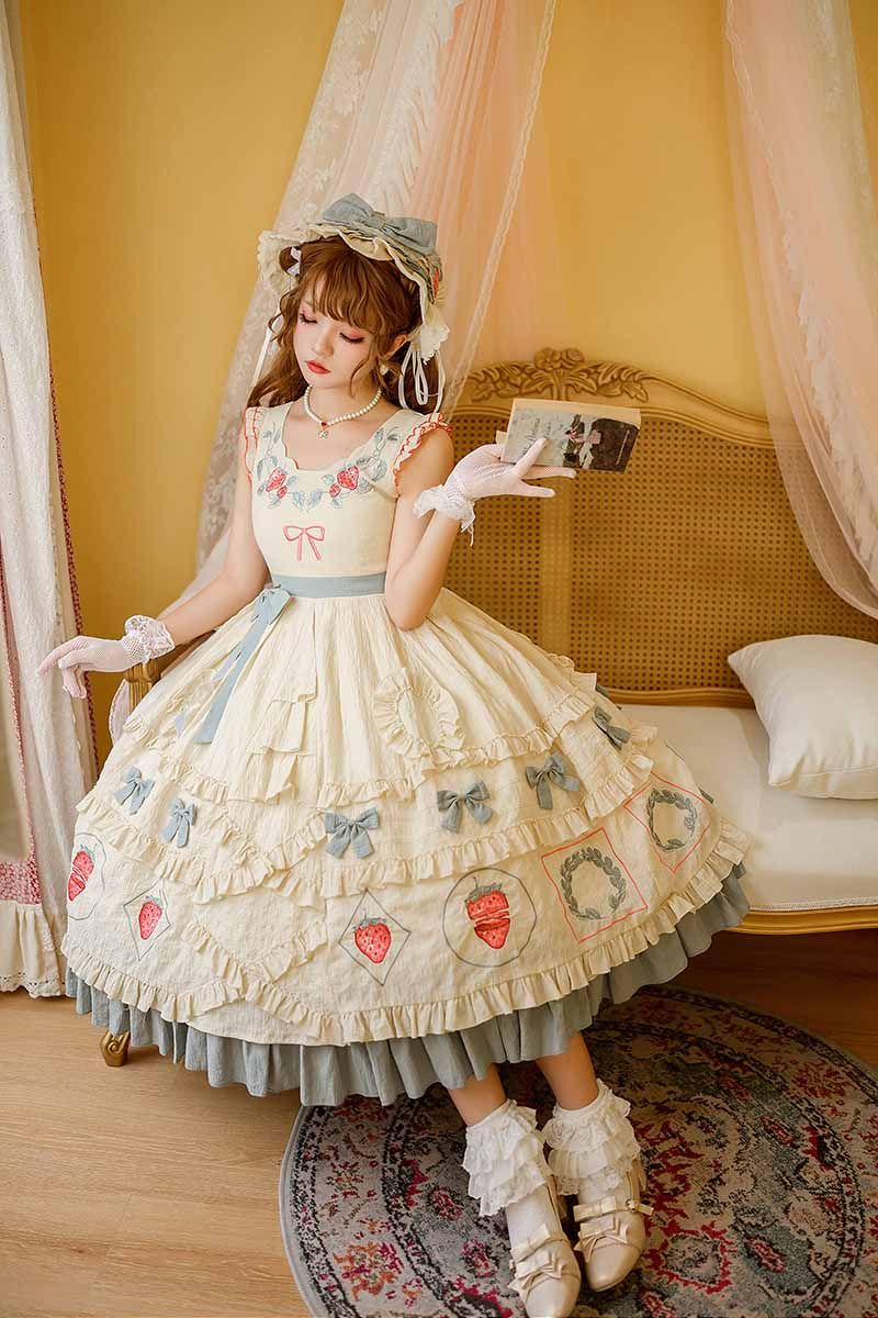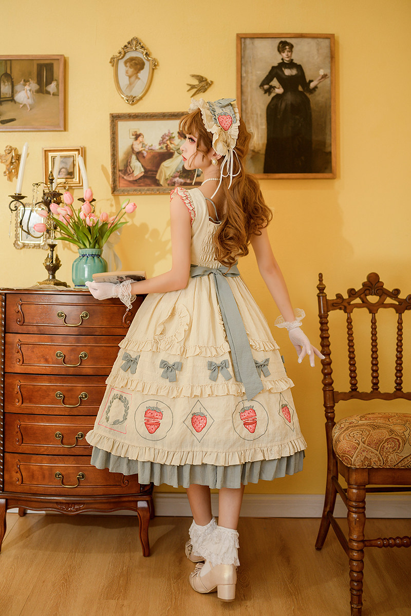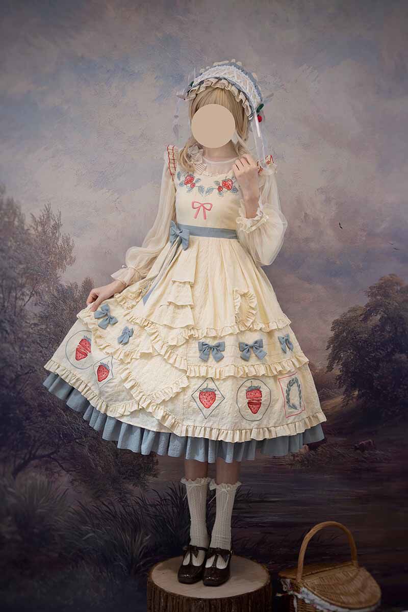 📚 【草莓酱JSK】全款现货包子猪lolita 刺绣草莓复古田园风洛丽塔裙