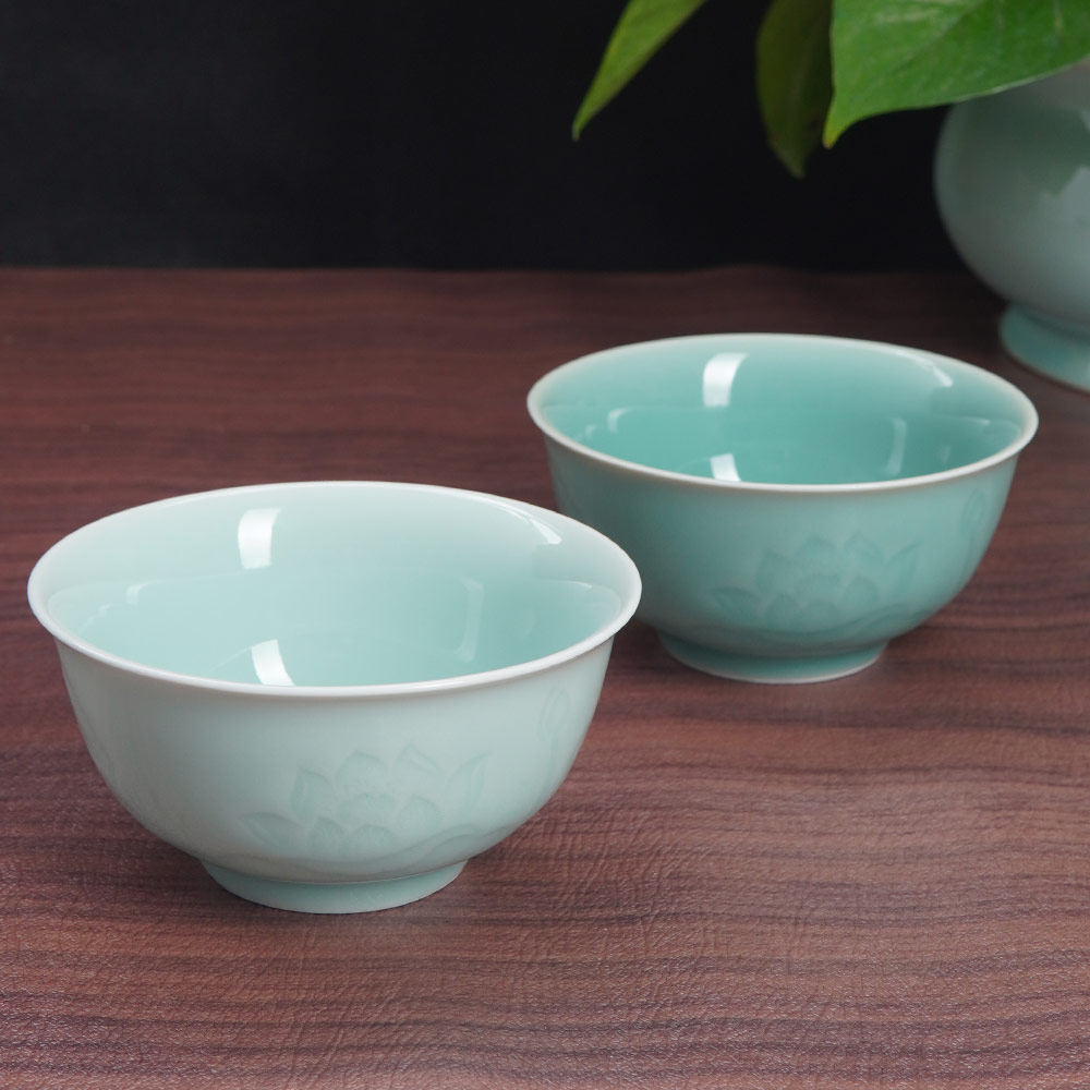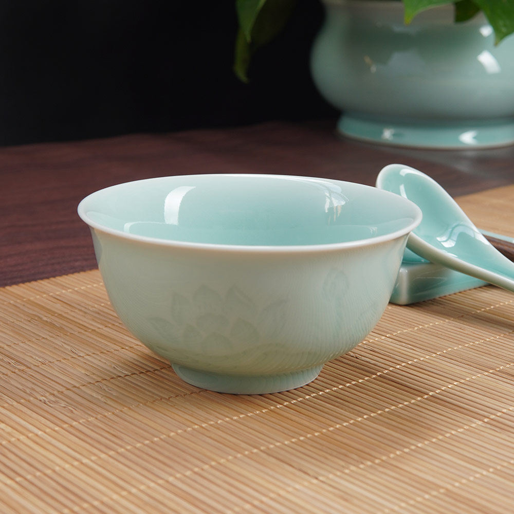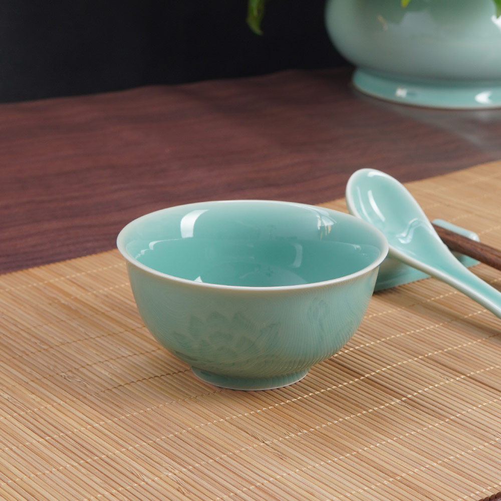 📚 云间青瓷龙泉窑米饭碗陶瓷碗家用中式荷花碗新款高档圆形碗