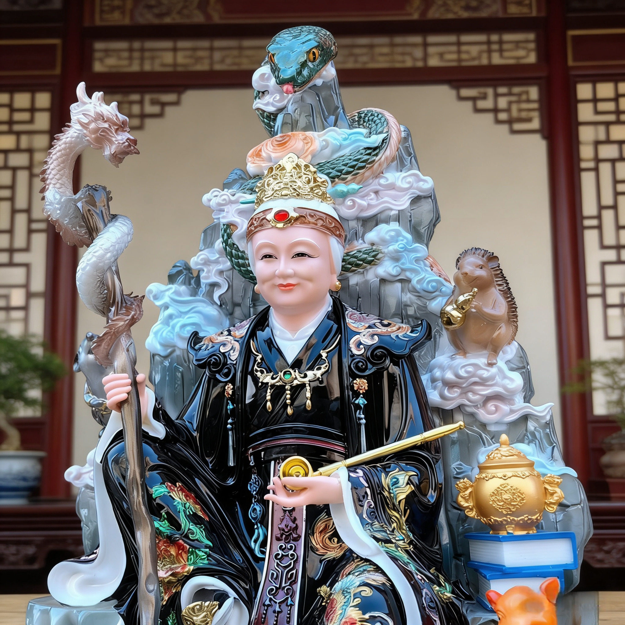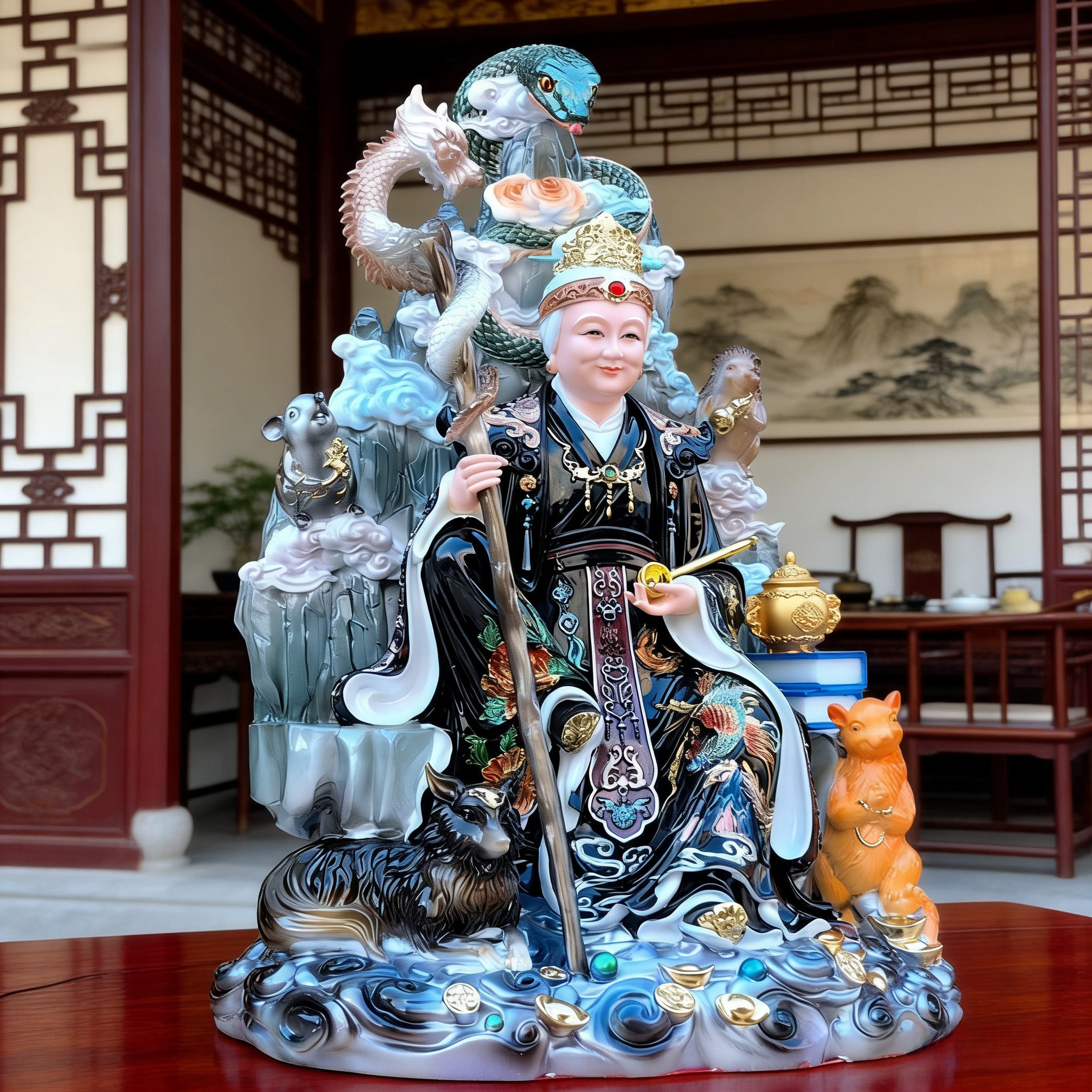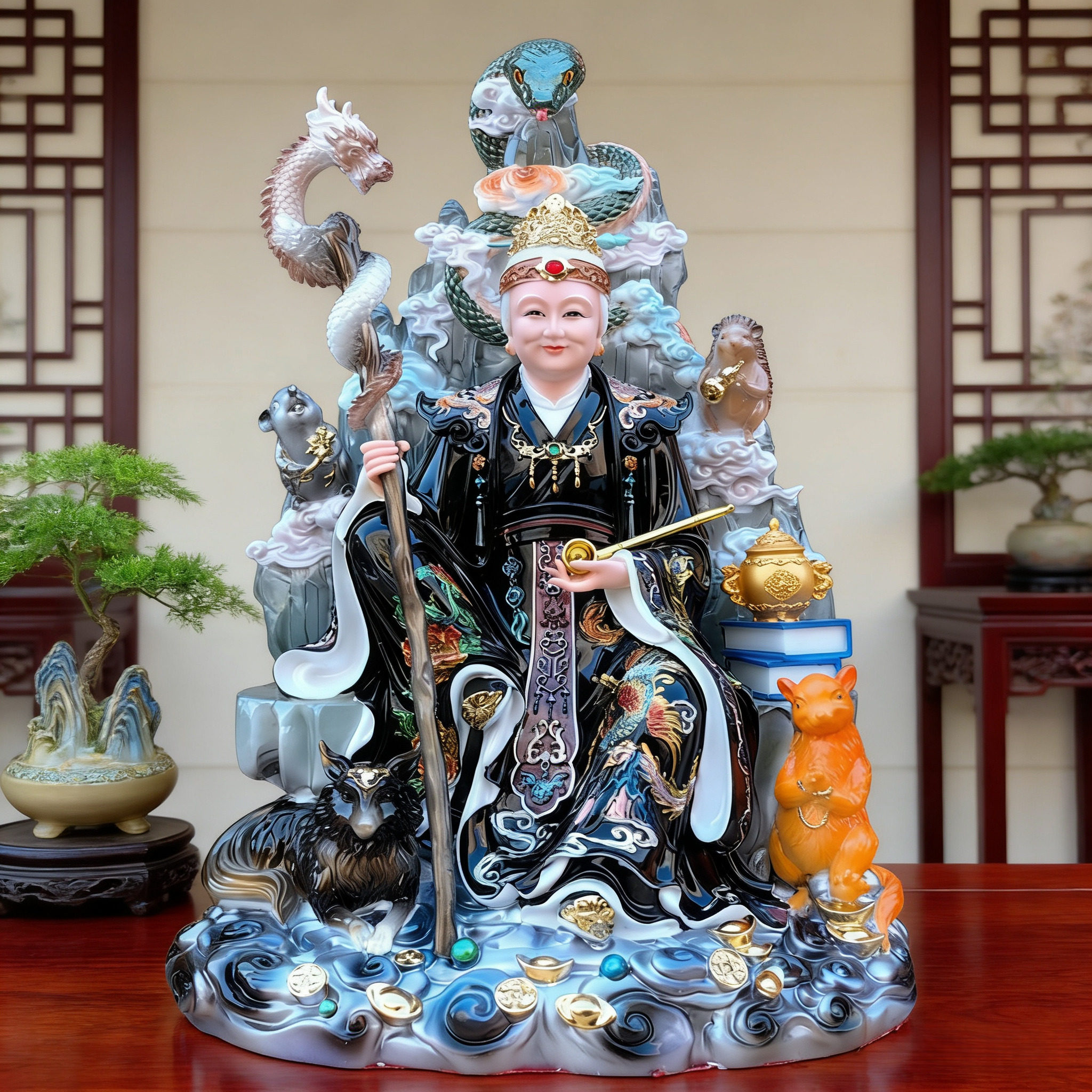 📚 五仙黑老太神像合成汉白玉黑老太太黑妈妈像体16寸家用供奉黑奶奶