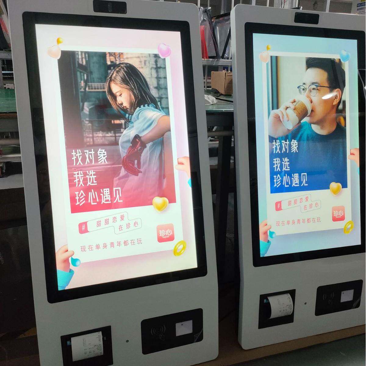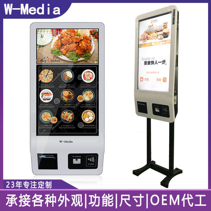 📚 体万立式卖点餐机32寸自售扫码支助付小票无品牌/打印触摸广告一