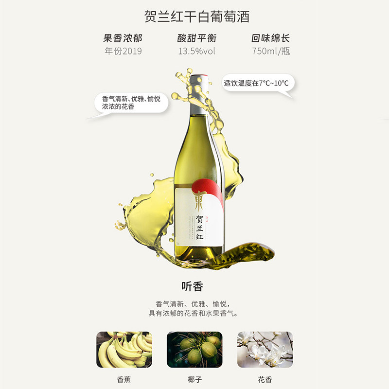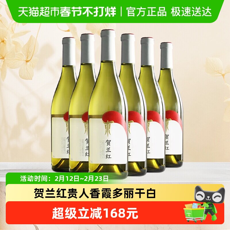 📚 贺兰红贵人香干白葡萄酒宁夏贺兰山红酒霞多丽干白国产750ml*6瓶